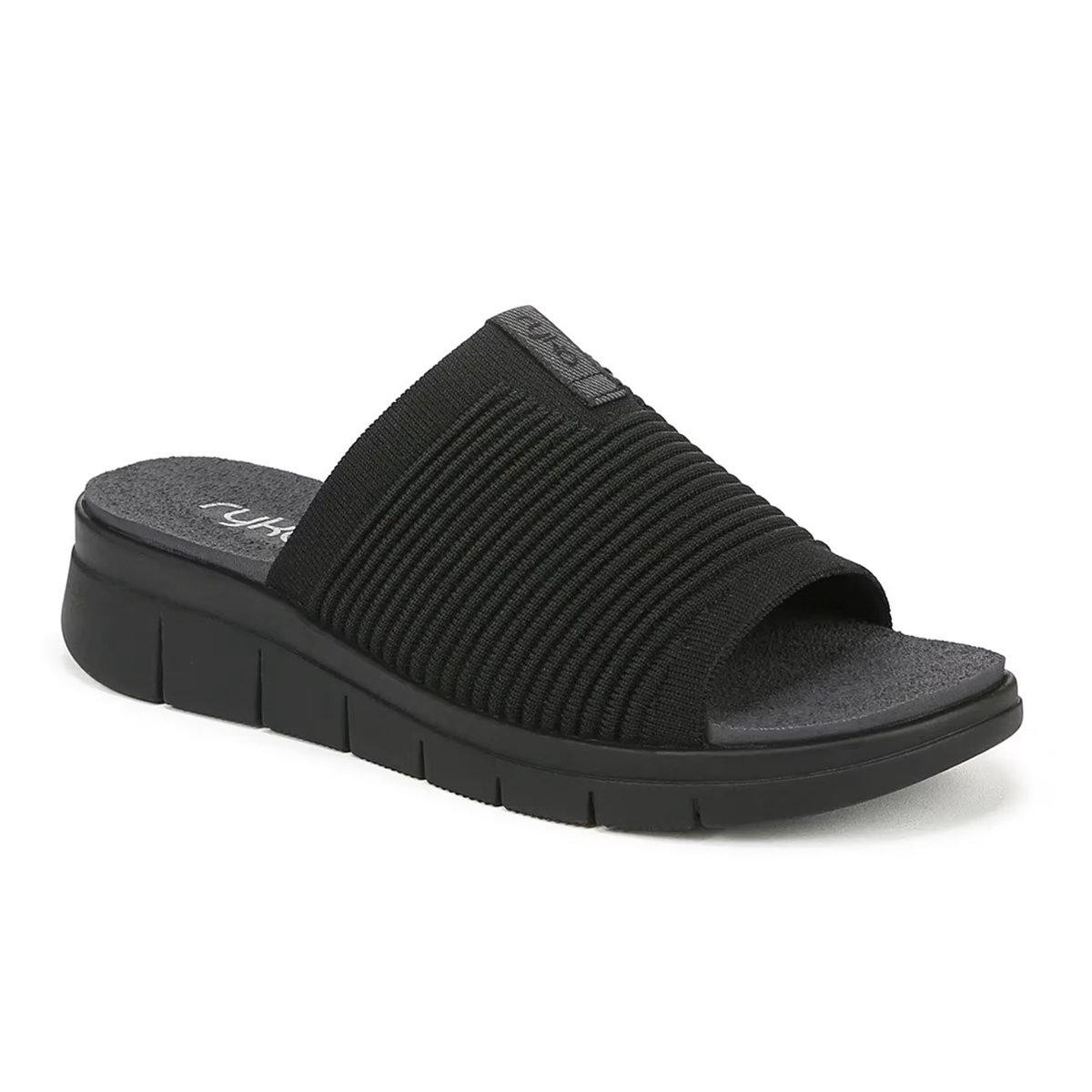Slip into a breezy style with the Epic wedge sandals from Ryka. This pair takes inspiration from a classic slide style, featuring a classic thick ribbed band strap and a slight wedge heel.