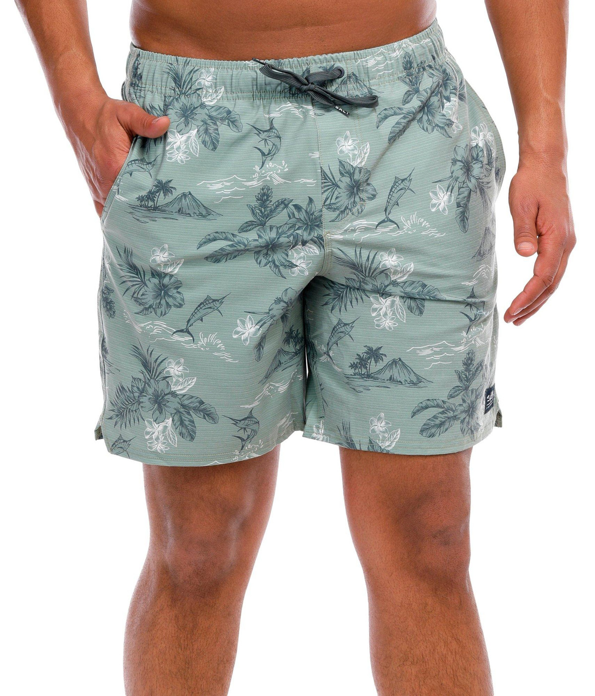 Dive into summer with our Men’s Ohana Swim Shorts, crafted from a comfortable blend of cotton, polyester, and spandex. These shorts feature an island-inspired graphic print that adds a tropical flair to your swimwear collection. The drawstring waistband ensures a secure, adjustable fit, while the mesh inner lining provides added support. With convenient side slip pockets, these swim shorts are perfect for beach days or poolside lounging.