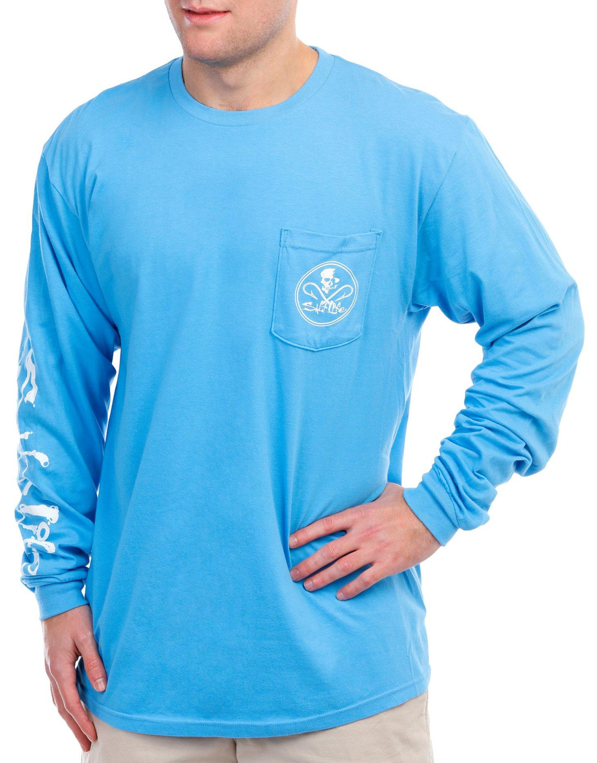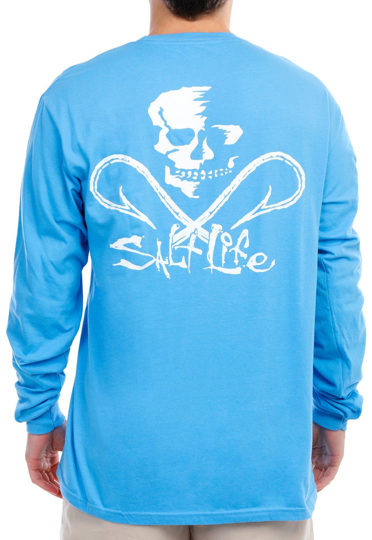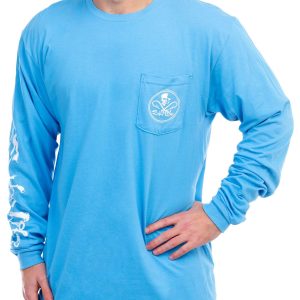 Unleash your adventurous spirit with the Men’s Skull & Hooks Long Sleeve Shirt. Made from 100% cotton, this shirt features a bold skull graphic design with logo script on the front chest slip pocket and back. Additional logo script adorns the sleeve, complementing the classic crew neckline. Perfect for both land and sea adventures, this shirt combines style and functionality for the ultimate in versatile wear.