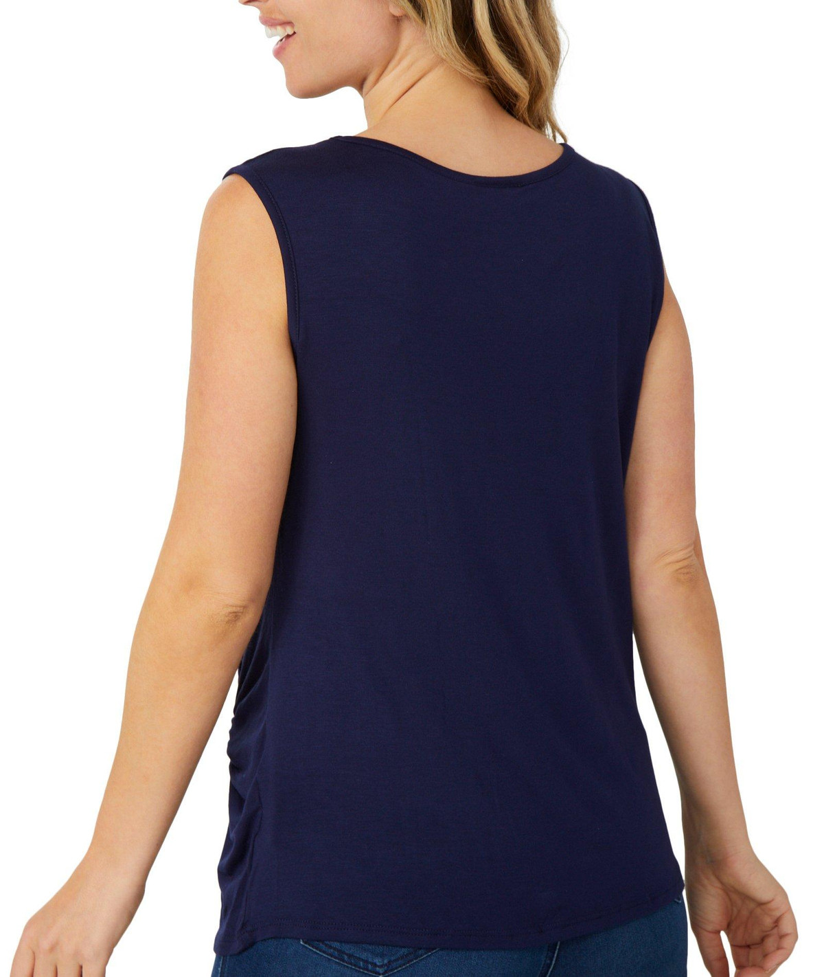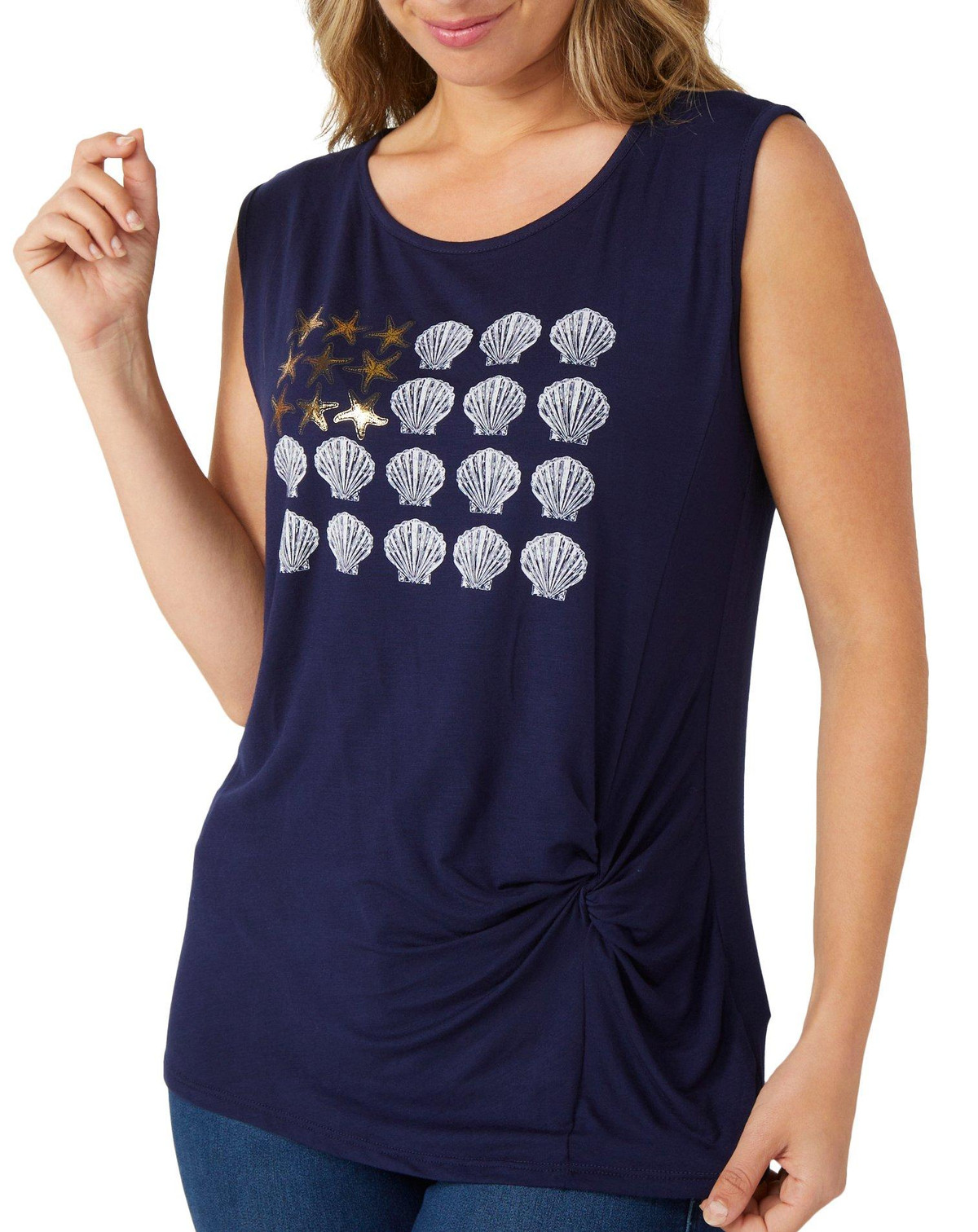 This sleeveless tank brings effortless style with a patriotic twist. Made from soft, breathable fabric, it features a bold front print and playful side tie detail for a flattering fit. Perfect for summer days, backyard BBQs, or festive celebrations, this tank adds comfort and charm to any casual look. Fabrication is 95% rayon, 5% spandex.