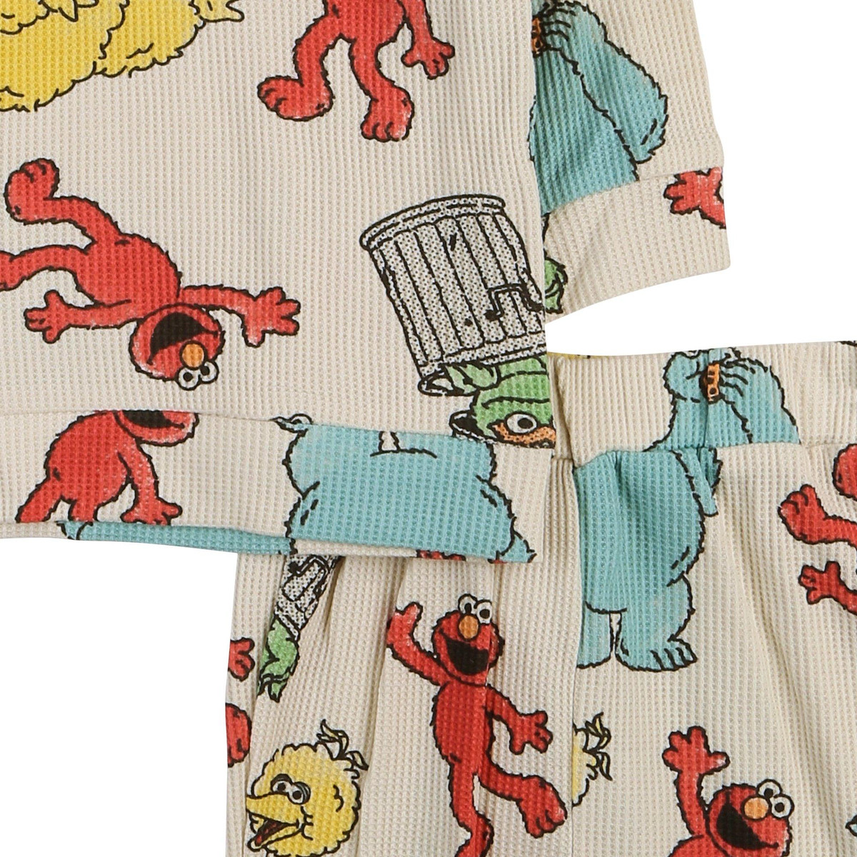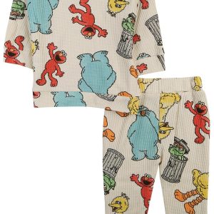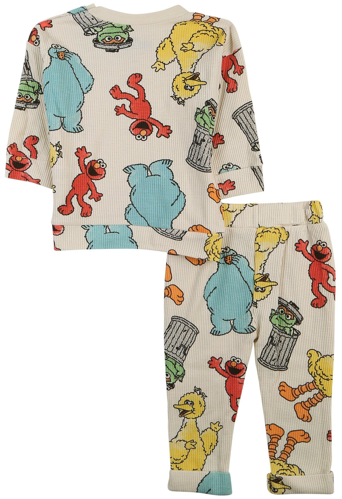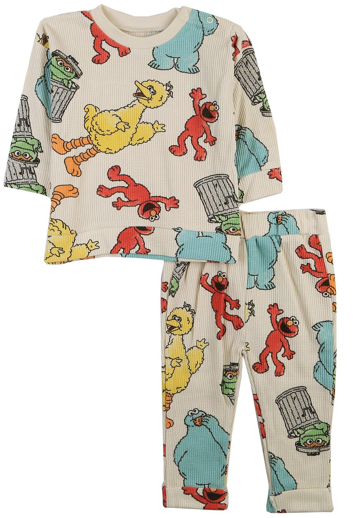 Keep your little one warm in this 2-piece set of colorful thermals! It includes a pair of pants and a matching long sleeve top, both sporting a waffle-knit pattern and colorful print designs.
