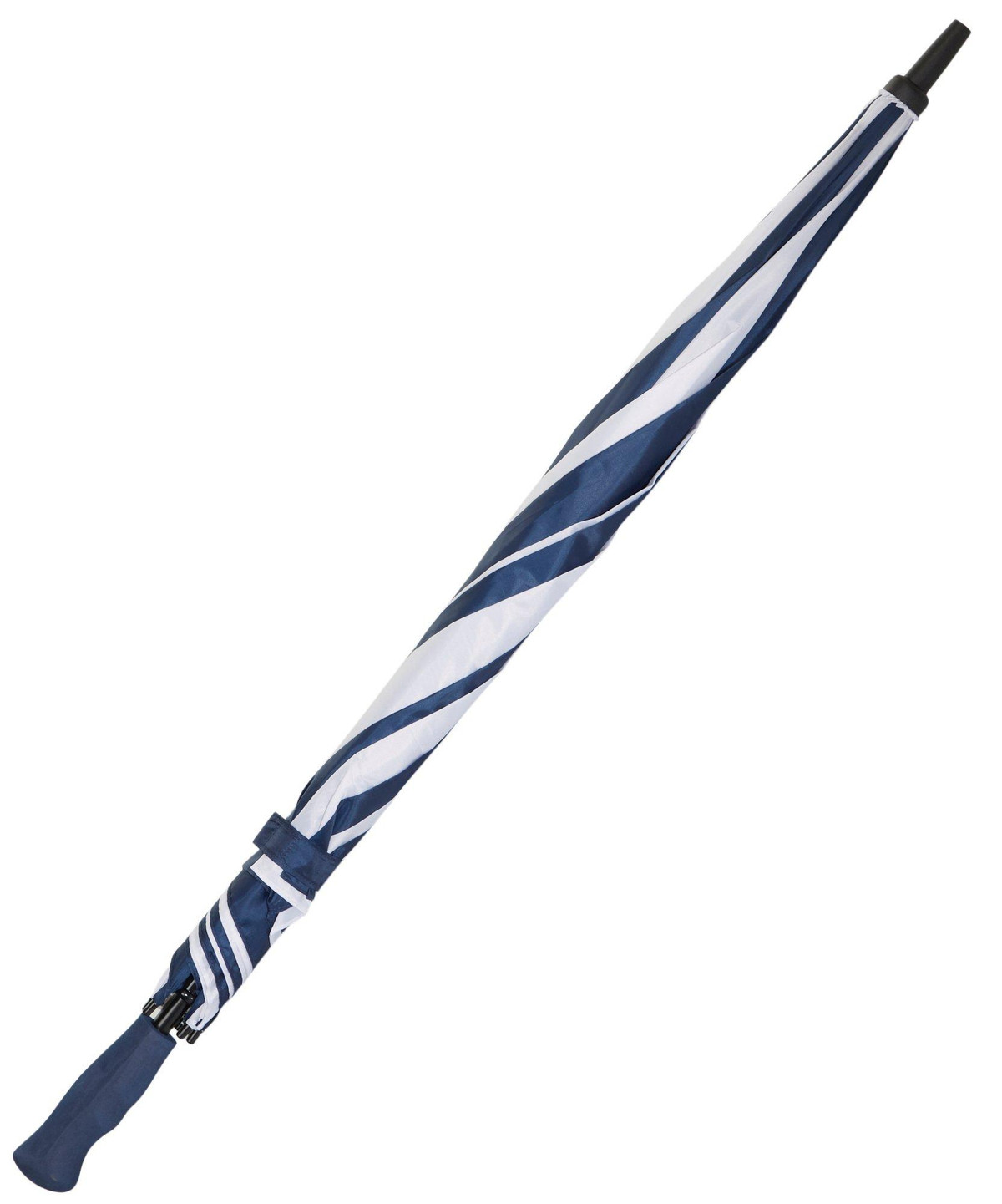 This umbrella from Shedrain features a polyester and stainless steel fabrication with a bicolor, classic golf design. Canopy arc is approximately 58 in. Weather resistant.