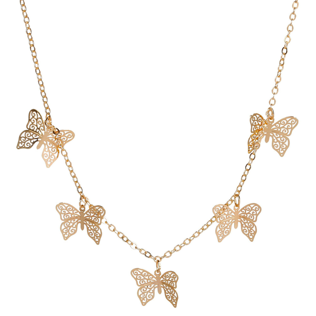 Enhance your look with the Girls Gold Butterfly Charm Necklace. This enchanting piece features a delicate gold-tone chain adorned with a beautiful butterfly charm. The lobster claw closure ensures a secure and comfortable fit, making it perfect for everyday wear or special occasions. Add a touch of whimsy and elegance to your jewelry collection with this charming necklace.