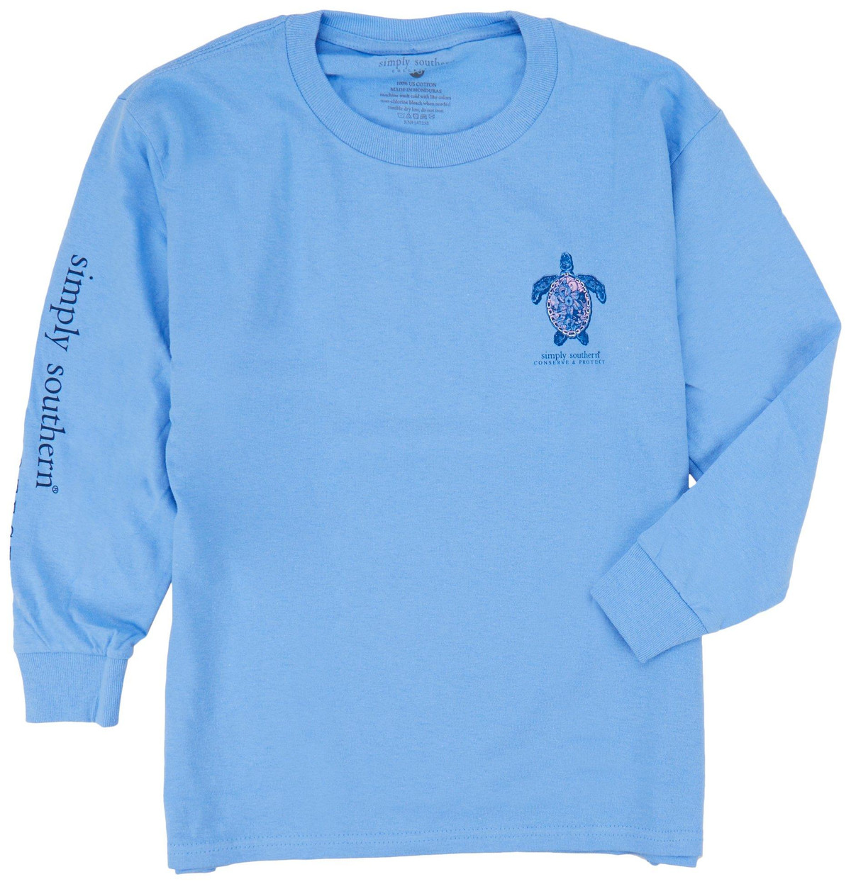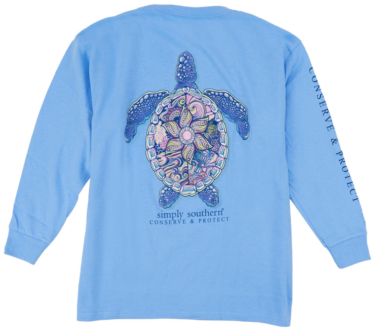 Introducing the Big Girls Mandella Turtle Long Sleeve Top, crafted from 100% cotton for ultimate comfort. This stylish top features a classic crew neckline and long sleeves, perfect for any season. The standout turtle screen print on the back adds a playful touch, while the brand script on the chest offers a subtle nod to quality. Ideal for casual outings or layering, this top combines comfort and style effortlessly.