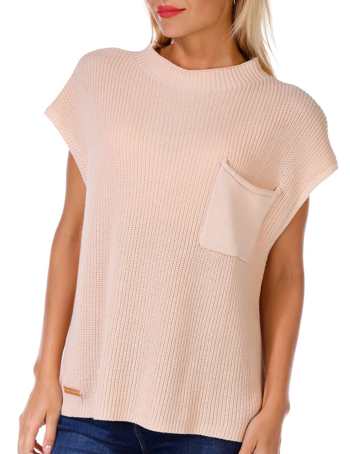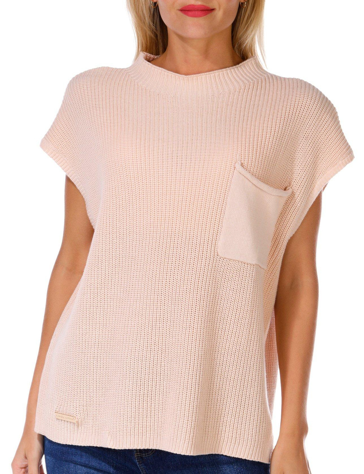 Juniors Cap Sleeve Solid Sweater Top offers a cozy yet stylish look with a soft knit design and super short cap sleeves. A chest pocket adds a casual touch while the crew neckline keeps it classic and easy to layer for any season. Fabrication 100% polyester