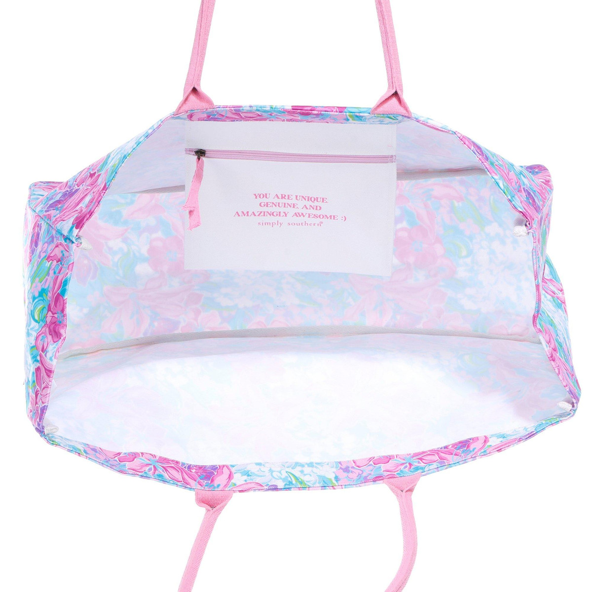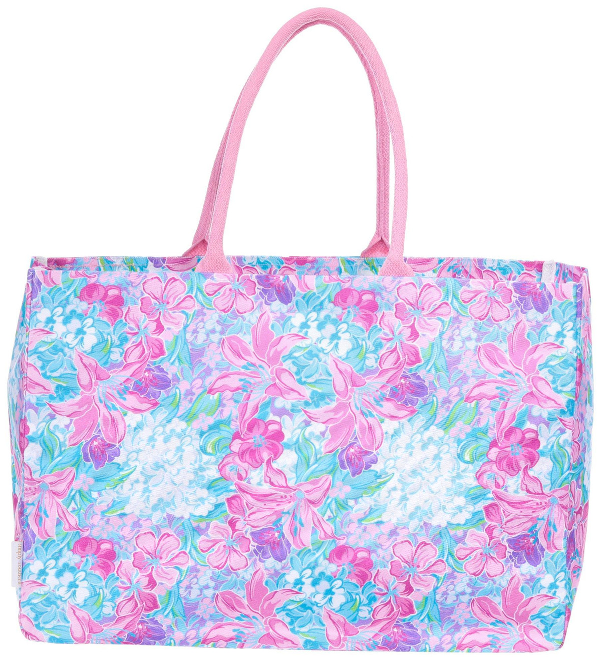 Add a pop of color to your day with this large, print Tote Bag. Made from durable polyester, it features two soft handles for comfortable carrying and a small interior zippered pocket to keep your essentials secure. Spacious and stylish, its perfect for beach days, shopping trips, or everyday errandsbringing both function and floral flair wherever you go. Measures approximately 20 in x 14 in x 7 in.
