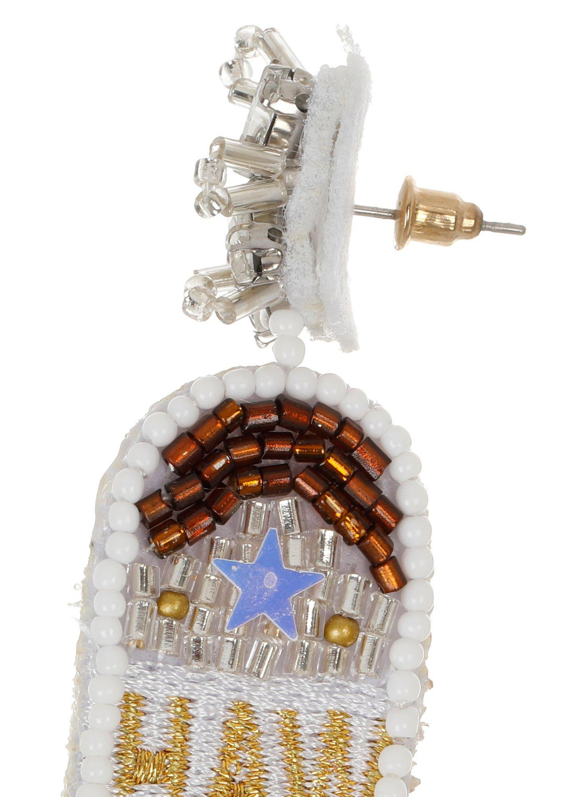 Make a statement with these beaded earrings. Each pair of earrings comes with a dustbag. Made from metal alloy, glass, and plastic. Measures approximately 1.5 in x 3 in.