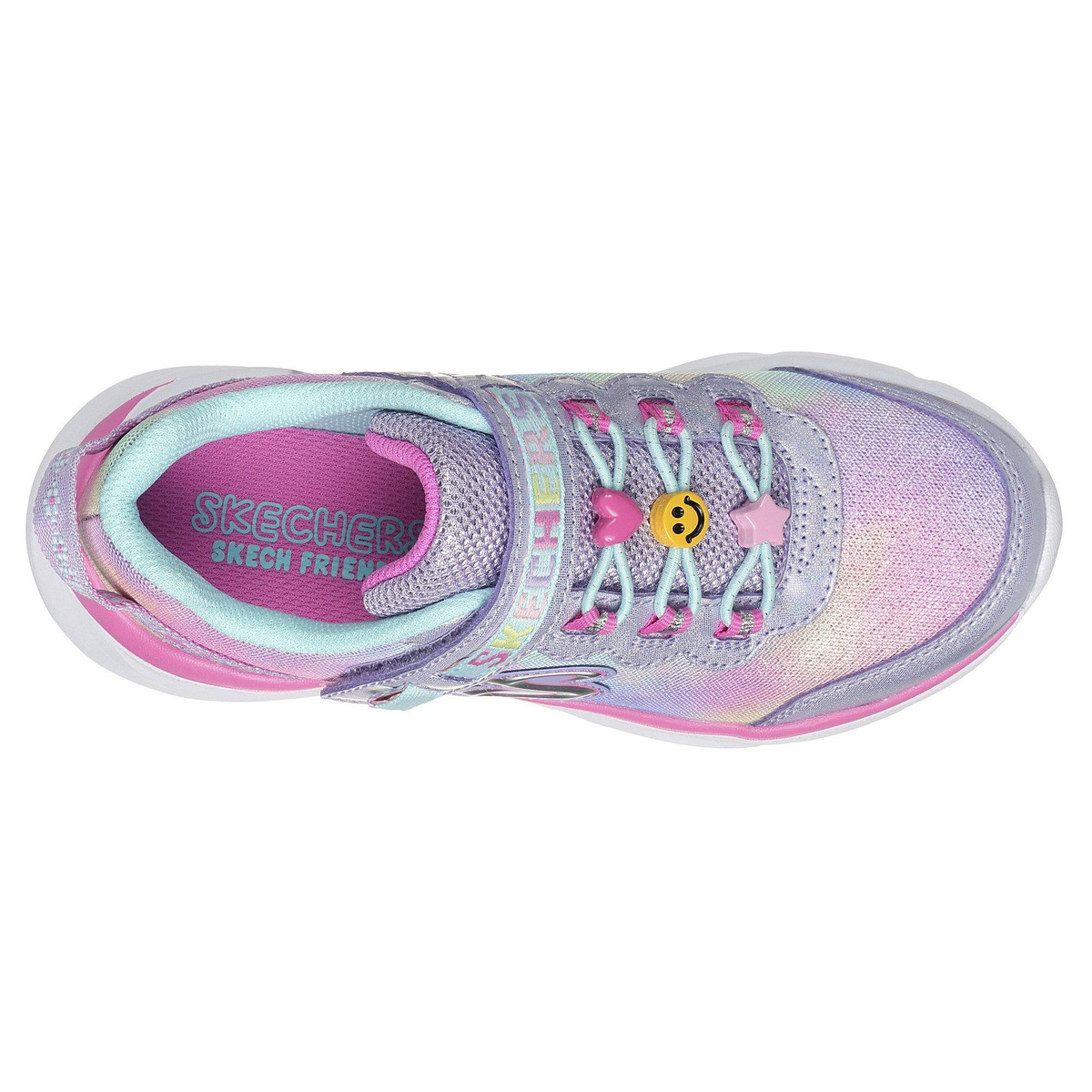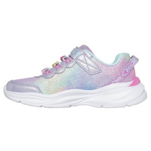 These Skechers Girls Power Jams Skech Friends Athletic Shoes have an easy pull on style with a man made fabric upper. The lightweight ribbed sole offers cushioned traction.