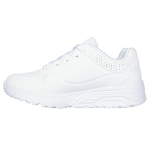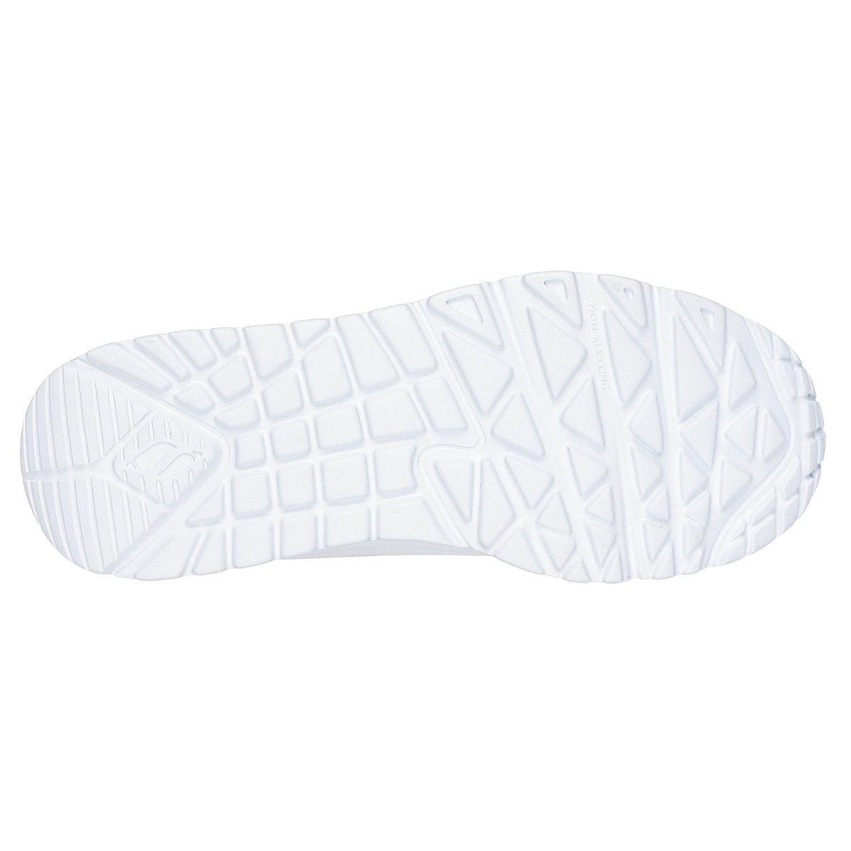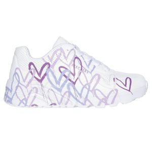 Internationally renowned muralist James Goldcrown brings his iconic #Lovewall heart designs to Skechers in this inspiring collaboration. Show your creative style with Skechers Street x JGoldcrown: Uno Lite – Spread the Love. This lace-up fashion sneaker features a print of the artist’s signature heart design that extends to the outsole, synthetic durabuck and perforated trimmed upper with a Skechers Air-Cooled Memory Foam® insole, plus a platform wedge midsole.