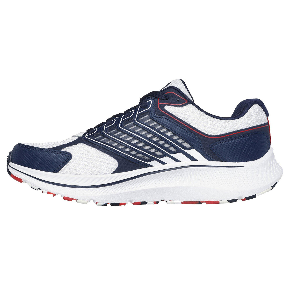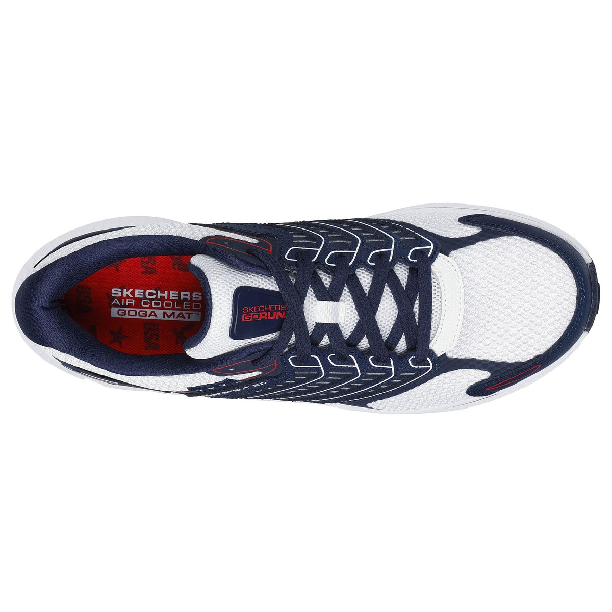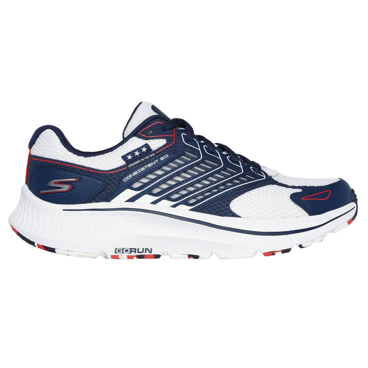 Run with the stars and stripes in comfort wearing GO RUN Consistent 2.0 Americana. Crafted for both style and performance, this American themed running design features a lace-up breathable mesh and leather overlay upper with responsive ULTRA LIGHT midsole cushioning and a high-rebound Skechers Air-Cooled Goga Mat insole. Flex grooves with rubber lugs for traction and stability.
