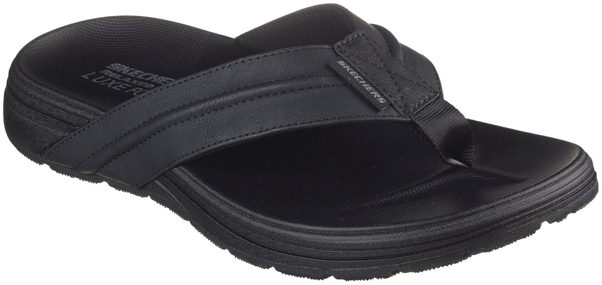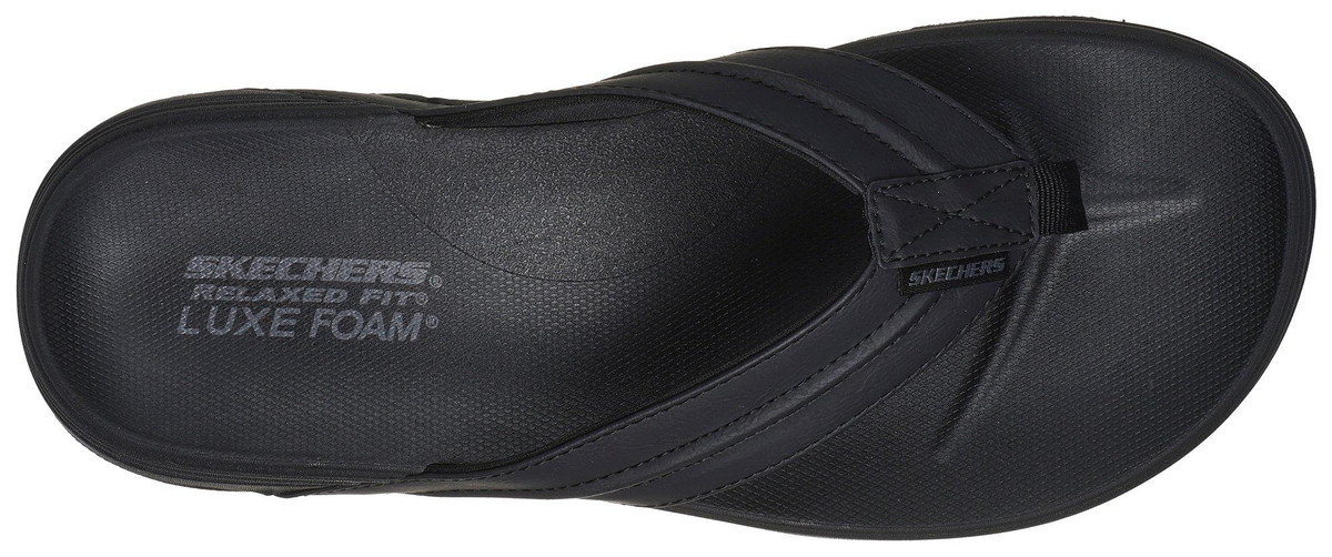 These stylish slip-on flip flops by Skechers combine style and comfort effortlessly! They feature a sturdy flip-flop-style upper strap, as well as a signature Luxe Foam footbed.