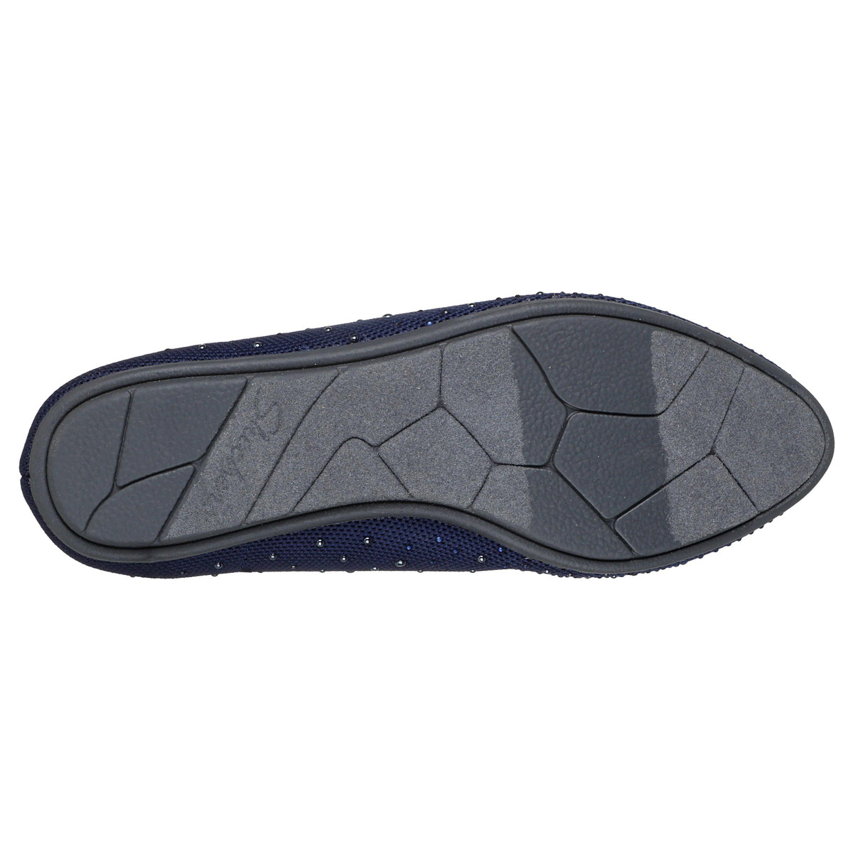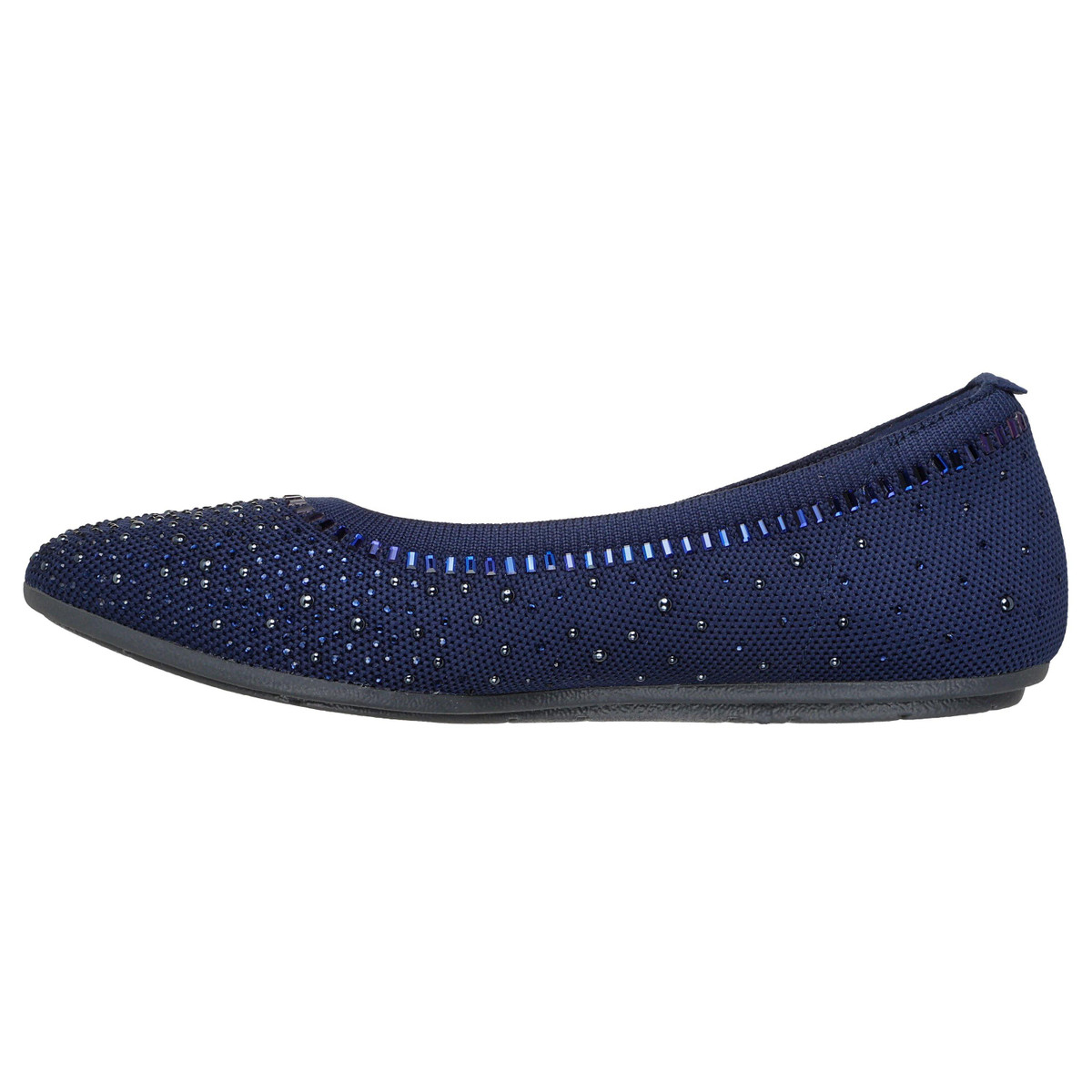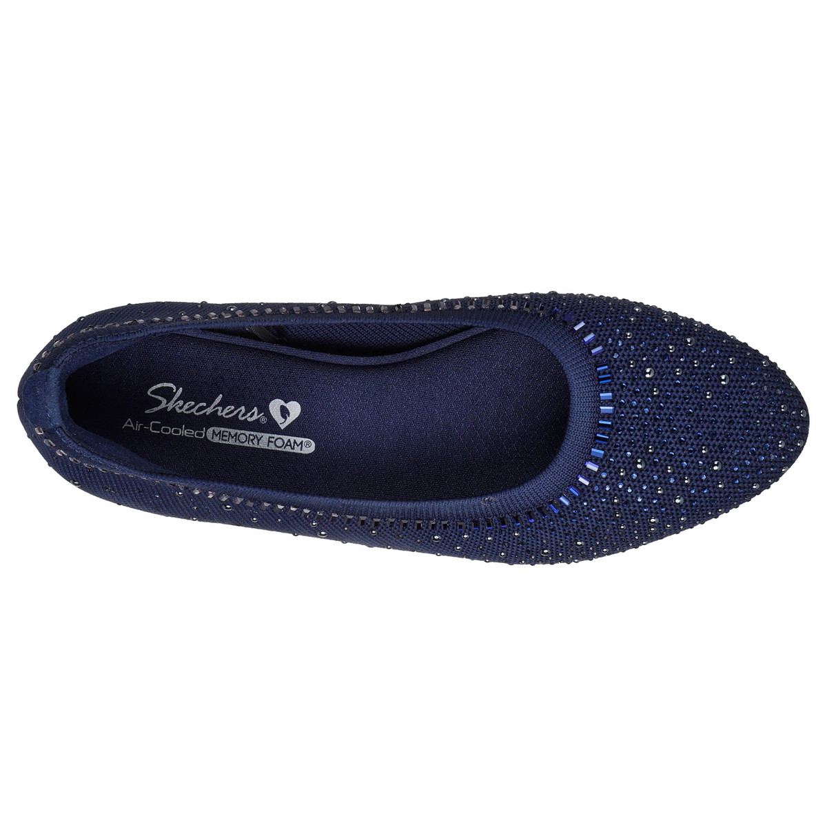 Own the night in the Skechers Cleo 2.0 – Mesmerizing Nights women’s flat. With a 20% recycled knit upper featuring black rhinestone embellishments for extra style, these ballet flats are vegan and Stretch Fit®. The Skechers Air-Cooled Memory Foam® insole cushions your steps while you navigate with flexible traction on the outsole.