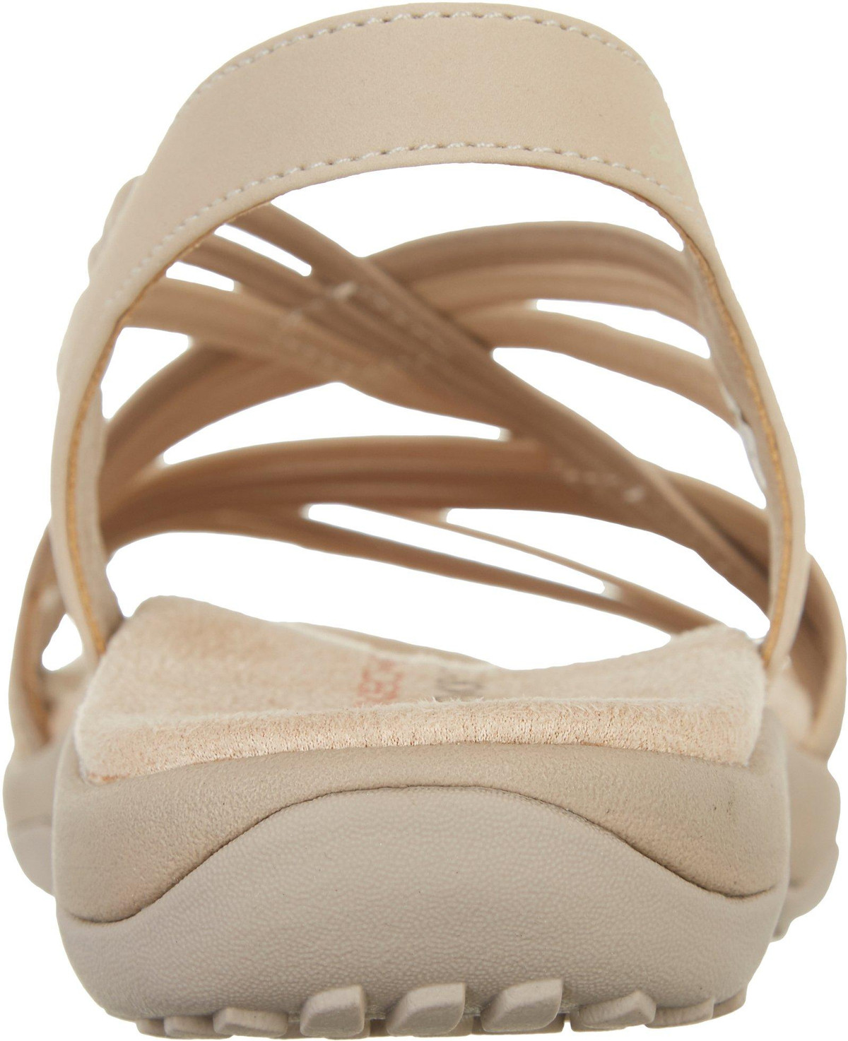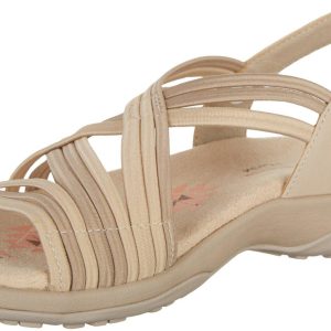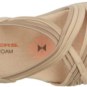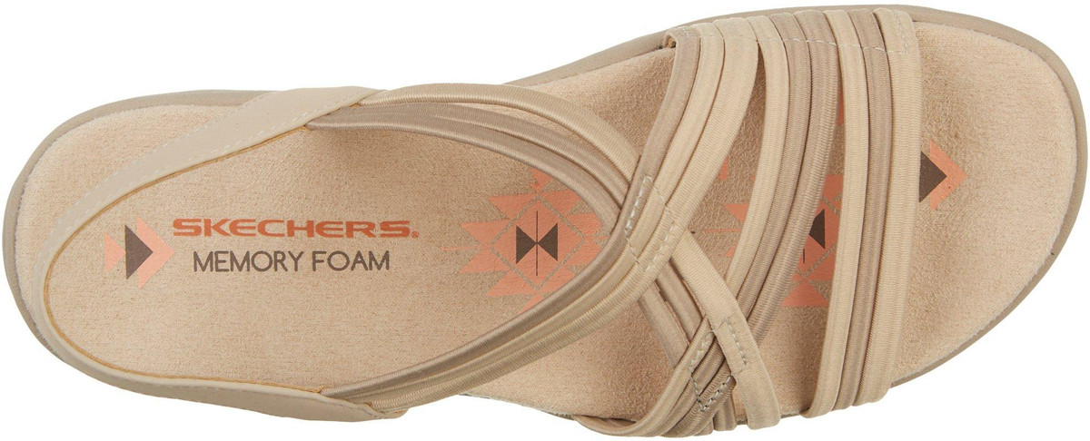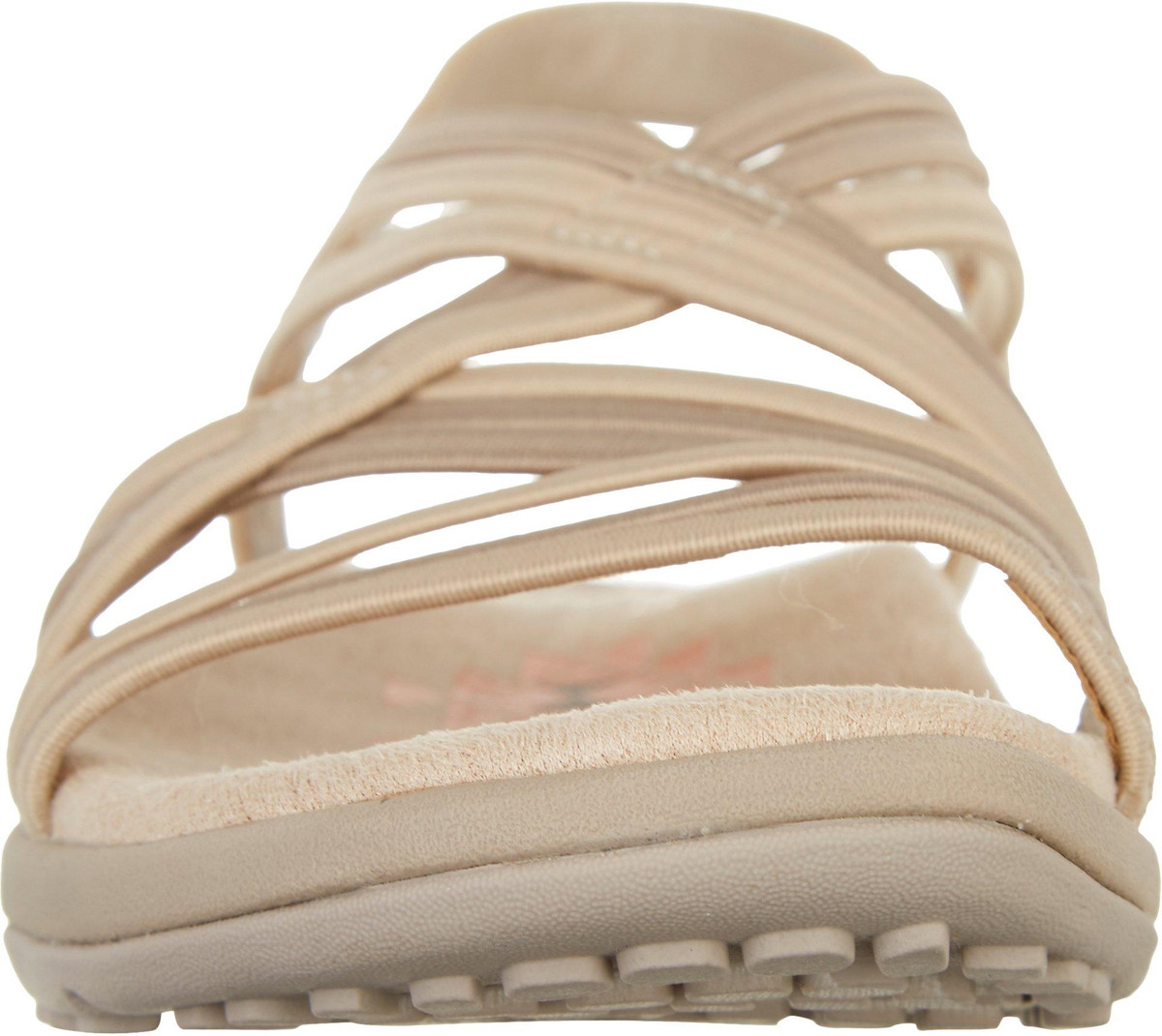 Stretch out and enjoy the sunny days in style with the SKECHERS Reggae Slim – Simply Stretch sandal. Soft stretch fabric and synthetic upper in a sporty casual slingback strappy slide sandal. Memory Foam footbed.
