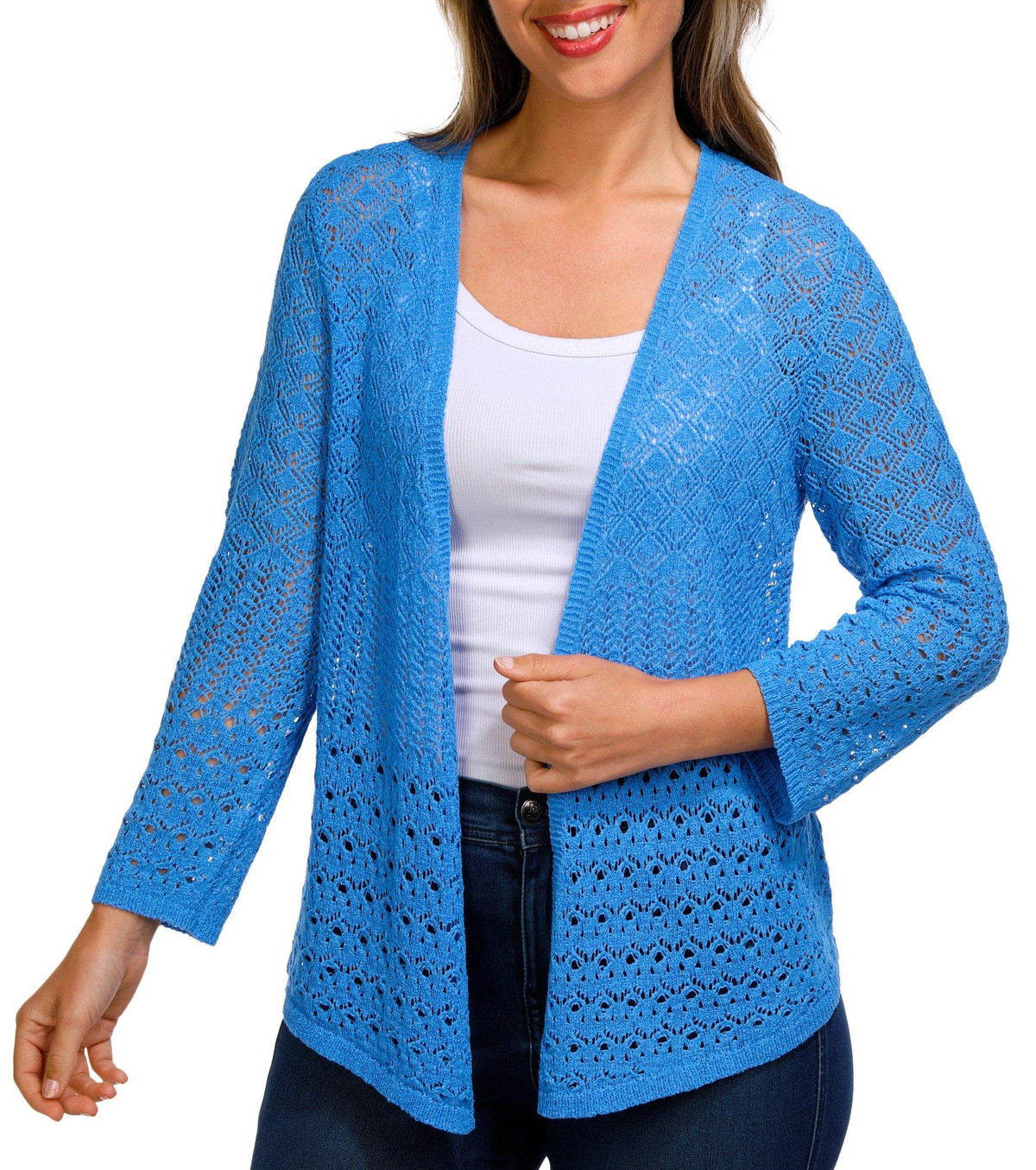 SKYES THE LIMIT Womens 3/4 Sleeve Pointelle Knit Cardigan