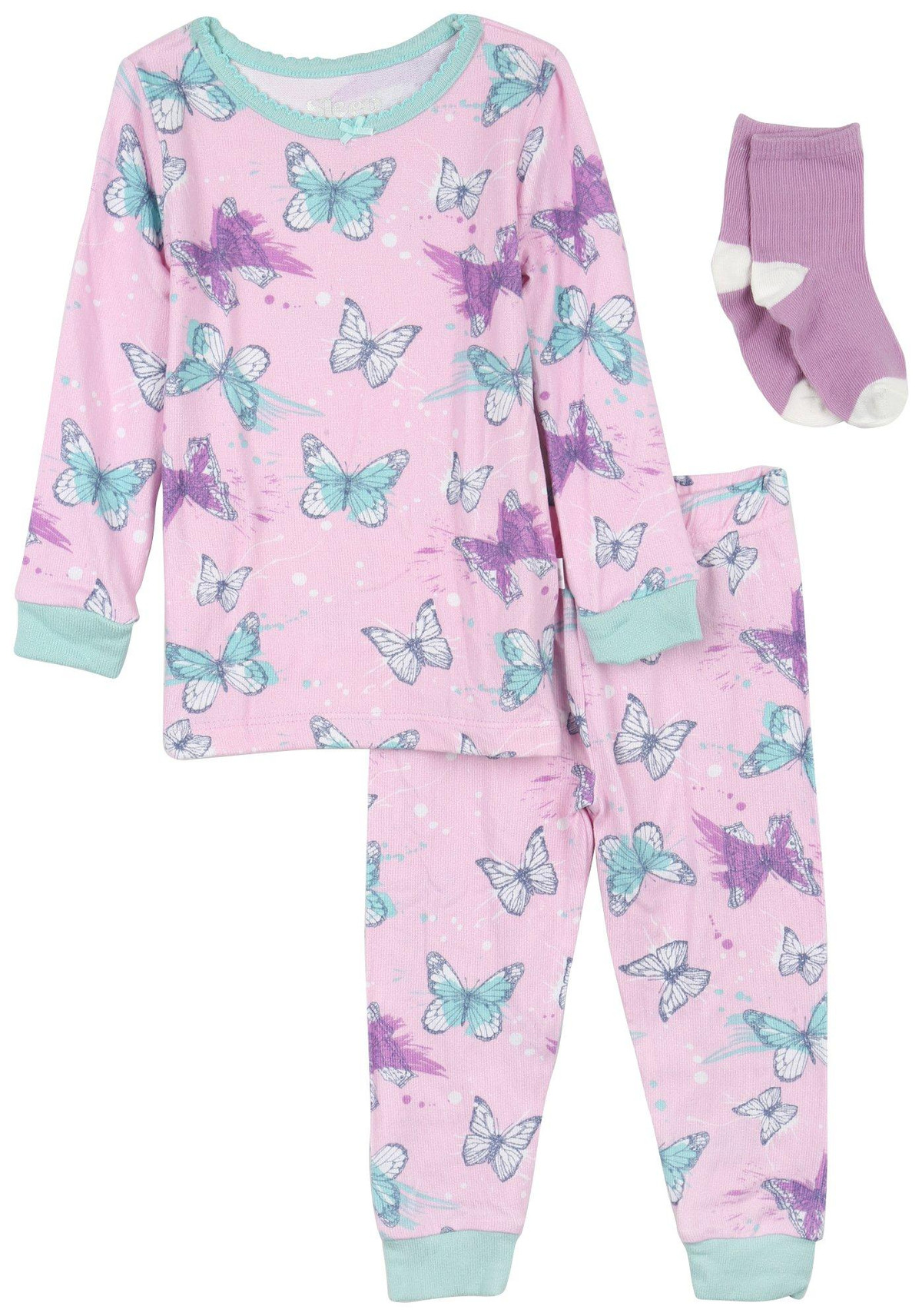 Sleep On It Toddler Girls 3 Pc Butterfly Pajama Pants Set