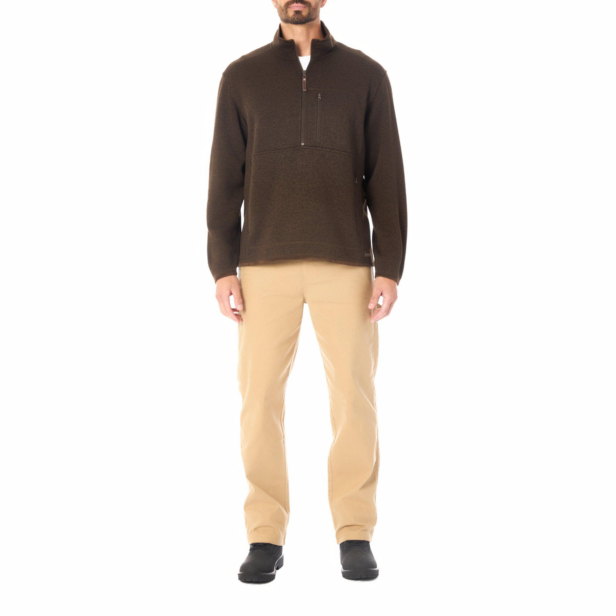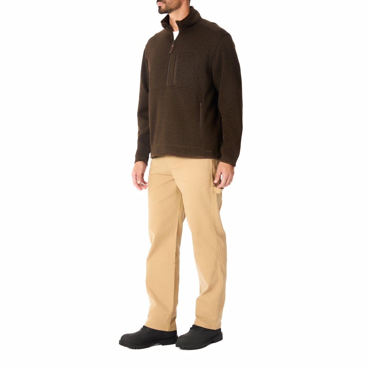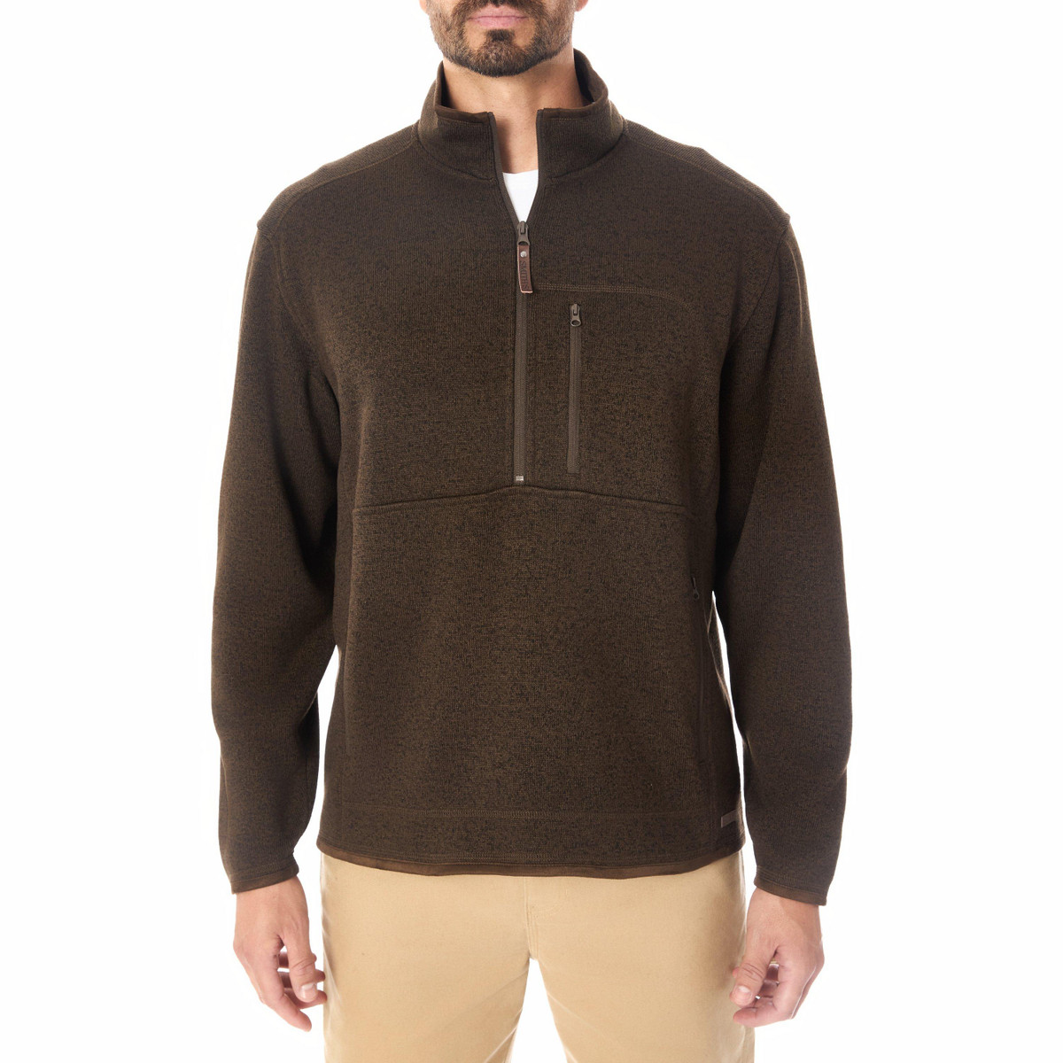 The Sweater Fleece Quarter Zip Pullover is comfy enough to be your go-to for all your fall outings. Made from 100% polyester, this jacket is ultra-soft while still maintaining a flattering fit. Complete with zippered pockets and a wind-guard placket, this quality men’s jacket is a breeze to throw on. Add this fleece jacket to your seasonal closet today.