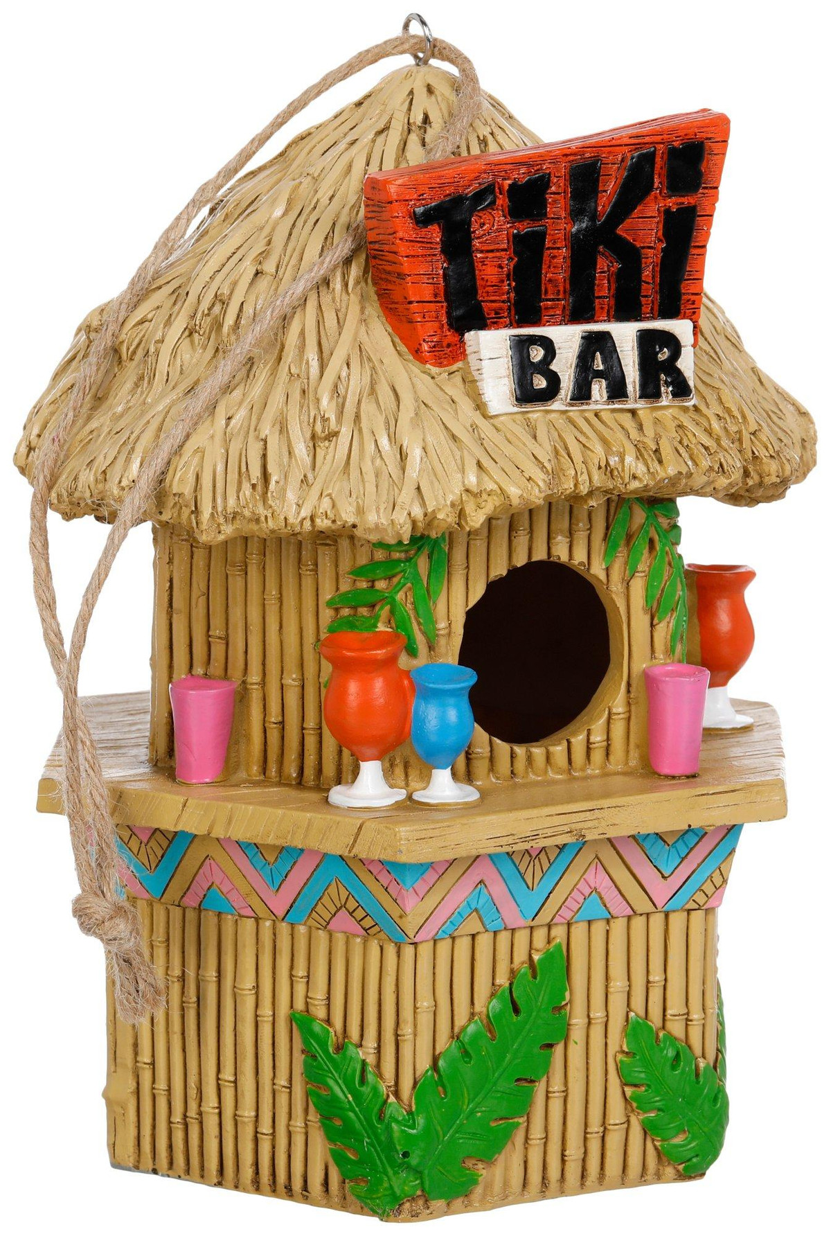 Welcome feathered friends in style with this 9 in Resin Tiki Bar Birdhouse, a delightful blend of beauty and function. Crafted from durable resin, this intricately designed birdhouse features a charming coastal motif, creating a cozy retreat for small birds while adding a touch of Florida charm to your garden or patio. Measures approximately 9 in x 6 in round.