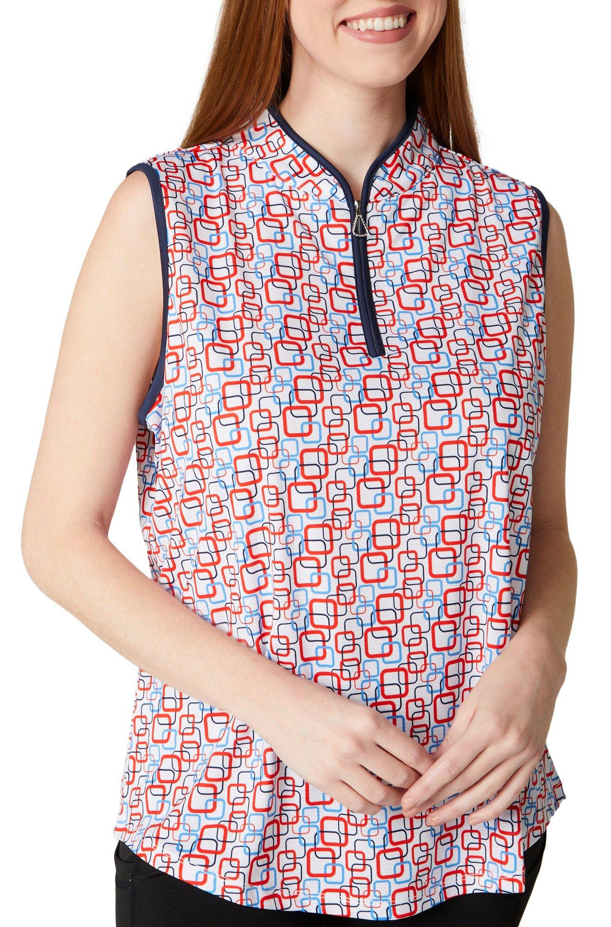 Stay stylish and comfortable with our Women’s Active 1/4 Zip Printed Sleeveless Top. Made from a breathable blend of 91% polyester and 9% spandex, this top offers flexibility and moisture-wicking performance. With a 24-inch length and a trendy printed design, it’s perfect for workouts or casual wear.