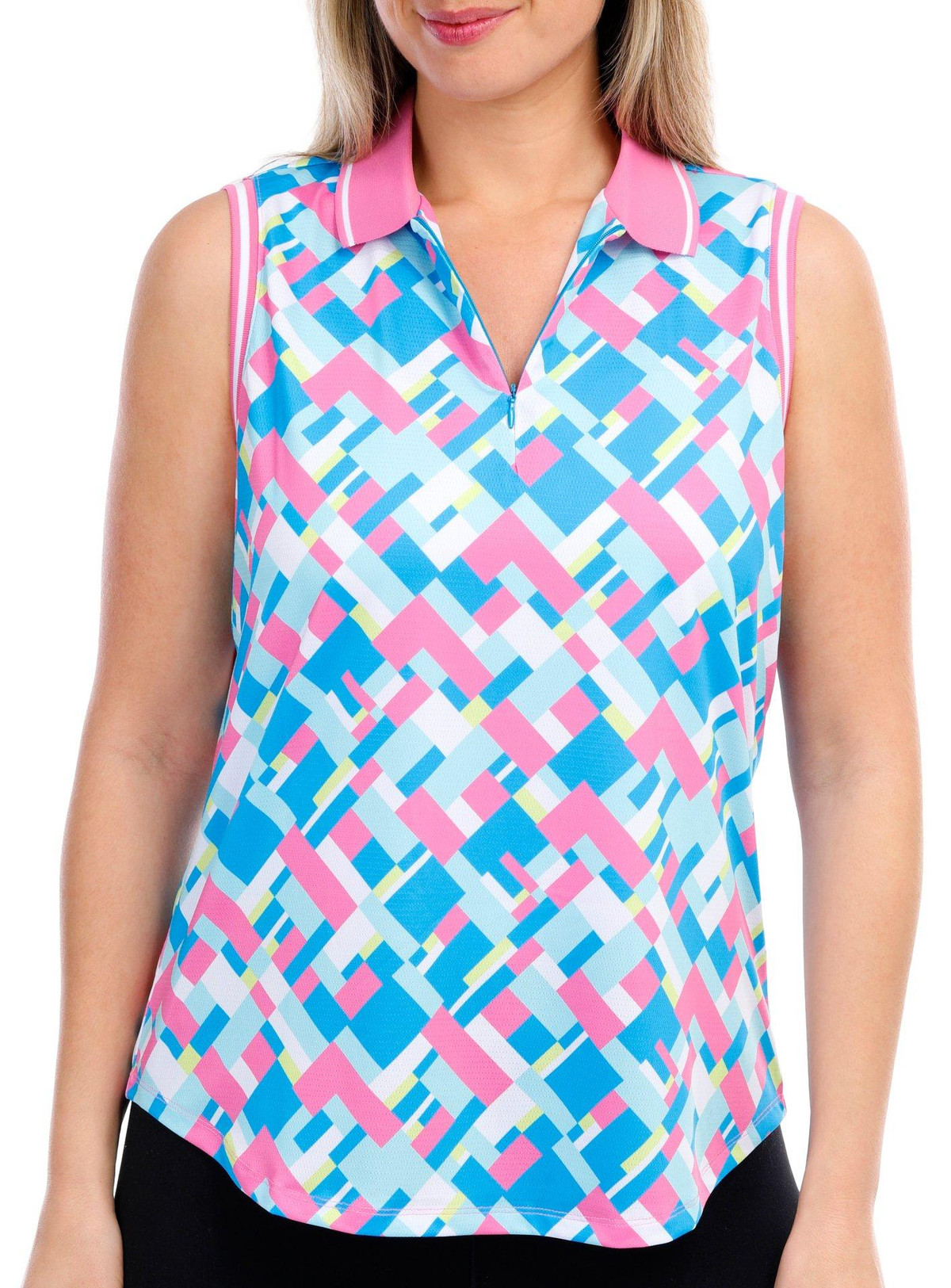Brighten up your wardrobe with the Sleeveless Polo Top. Featuring a vibrant print pattern, this top adds a splash of color to any outfit. The 1/4 zip placket offers a modern and sporty touch, while the sleeveless design ensures comfort and breathability. Perfect for warm days or active outings, this top combines style and functionality effortlessly. Fabrication is 91% polyester, 9% spandex.