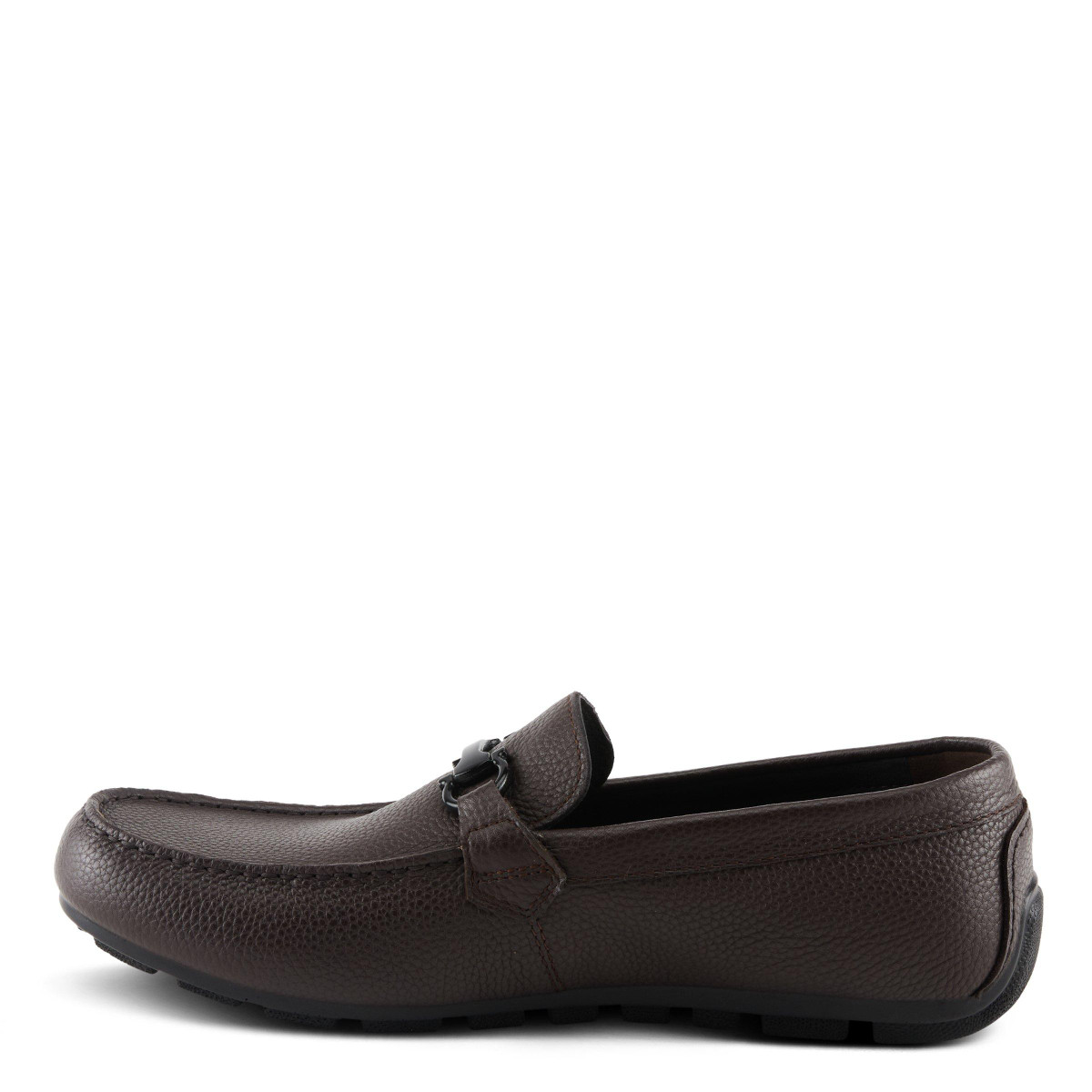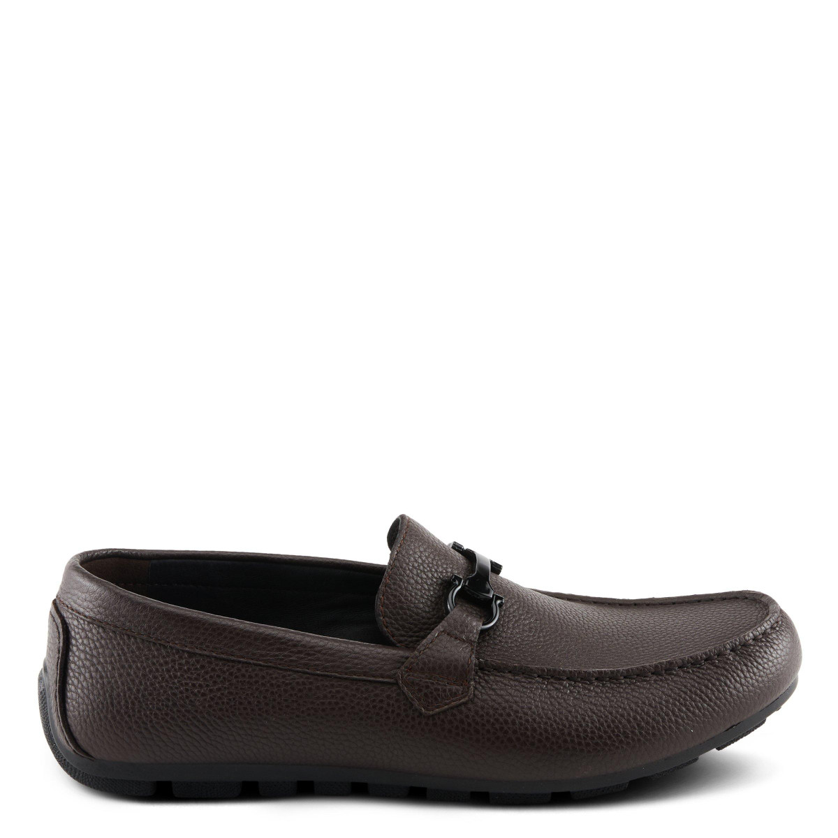 Elevate your style with our fashionable Jarrett driving moccasin style slip-on shoe. Crafted from full-grain soft milled leather, this shoe features a hand-stitched moccasin-style apron and a shiny colored metal saddle trim. The soft PU full-length removable footbed and leather linings ensure all-day comfort. The flexible polyurethane outsole with driving shoe tread and heel provides excellent traction. Perfect for any occasion, this shoe combines elegance and practicality.