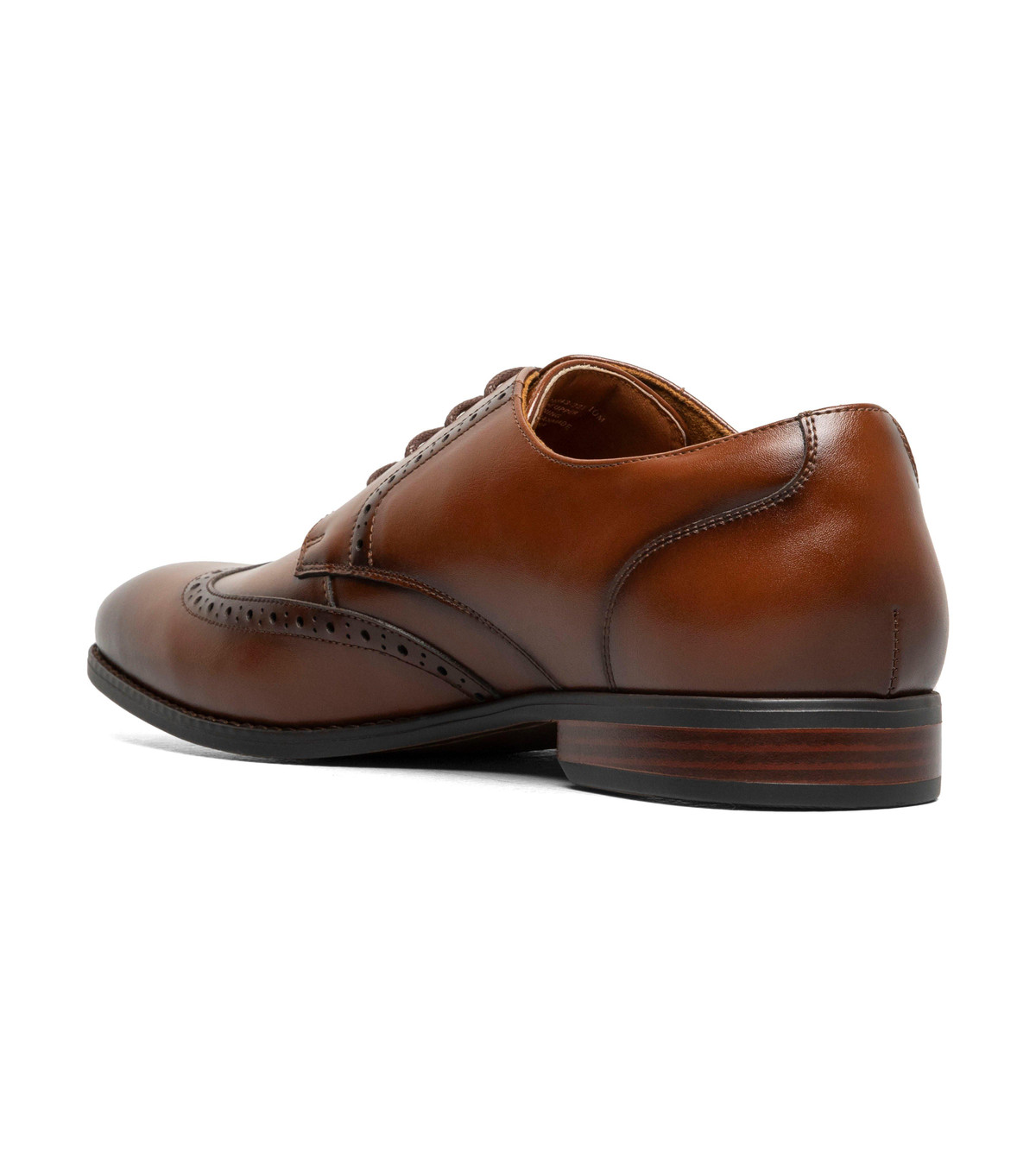 The Stacy Adams Nichols wingtip oxford is a statement of timeless sophistication. Featuring intricate brogue detailing along the classic wingtip pattern, it blends traditional elegance with modern durability. The durable man-made upper provides a polished finish, while soft microfiber linings ensure a luxurious feel. Designed for comfort, the RedZone removable footbed offers superior cushioning and arch support. A sturdy rubber outsole delivers excellent traction and durability.