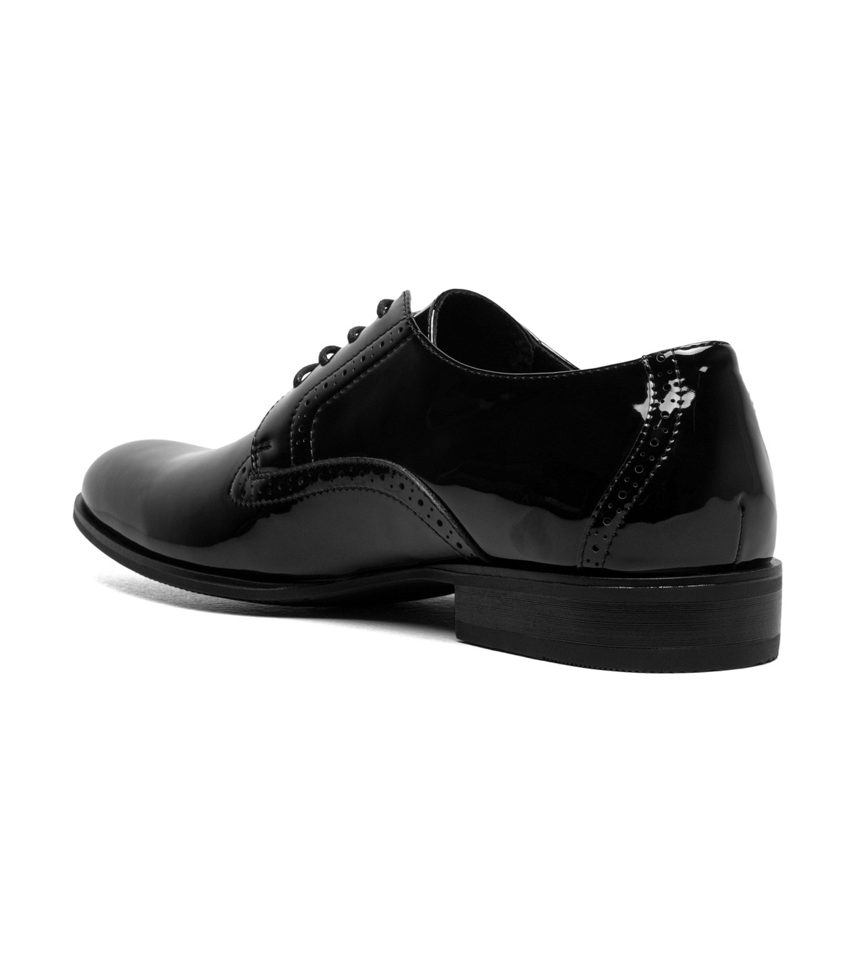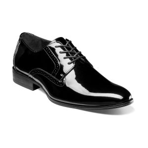 Take your dress look up a notch with the Stacy Adams Scottie Plain Toe Oxford. Featuring an elegant, man-made patent leather upper, this shoe can be worn for a multitude of dress occasions, from the most formal tux to your favorite suit. Features include microfiber linings for comfortability, fully cushioned insoles with Memory Foam and leather footbed covers for all-day comfort, and durable rubber outsoles.