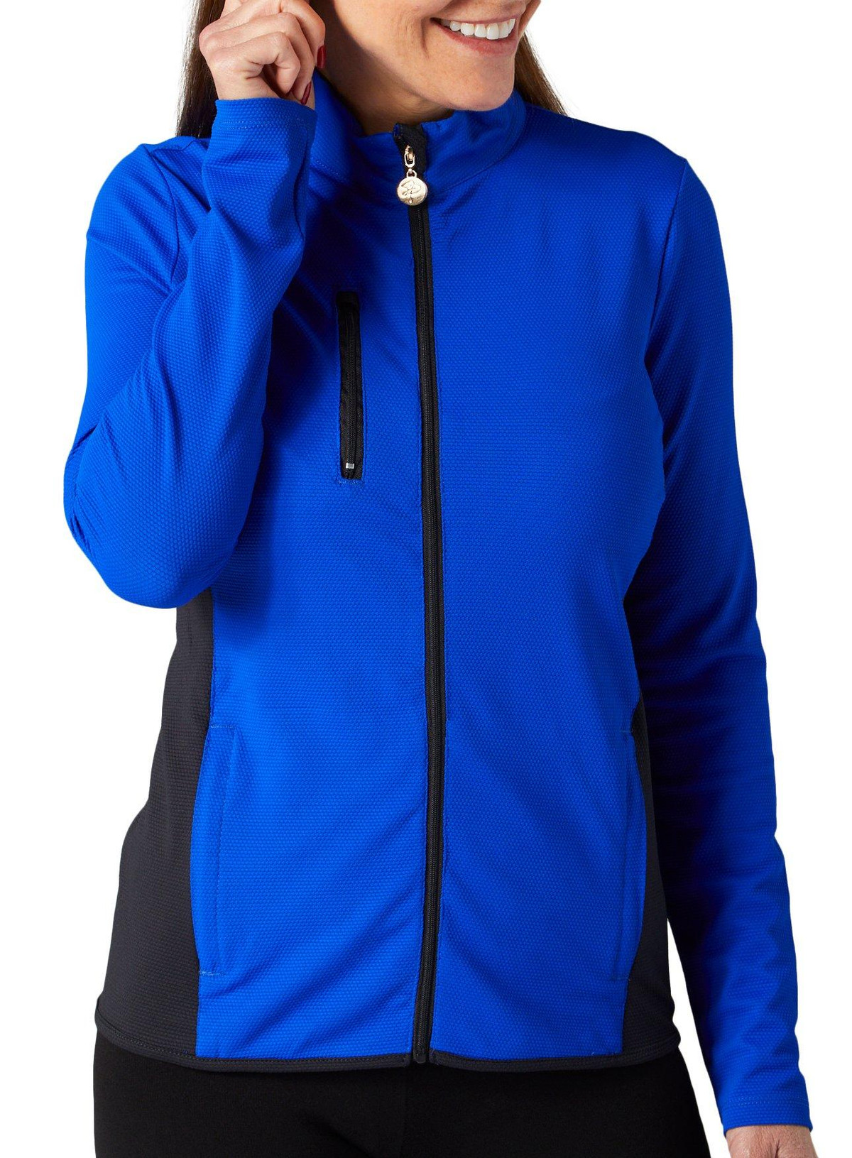 Stay protected and stylish on the golf course with this stylish Long Sleeve Jacket. Designed with sun protection in mind, this jacket ensures you stay safe under the sun. The full zip front allows for easy on and off, while the double zipped side pockets provide secure storage for your essentials. Perfect for varying weather conditions, this jacket combines functionality and comfort, making it a must-have for any golfer’s wardrobe. Fabrication is 96% polyester, 4% spandex.