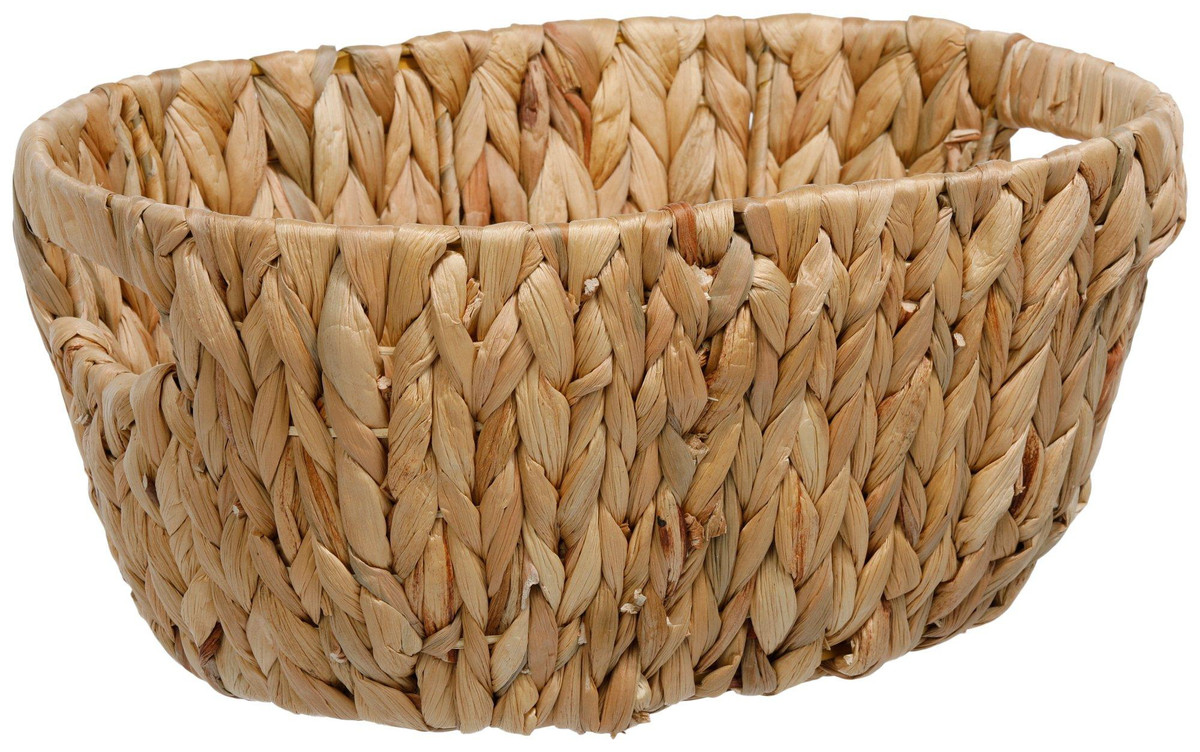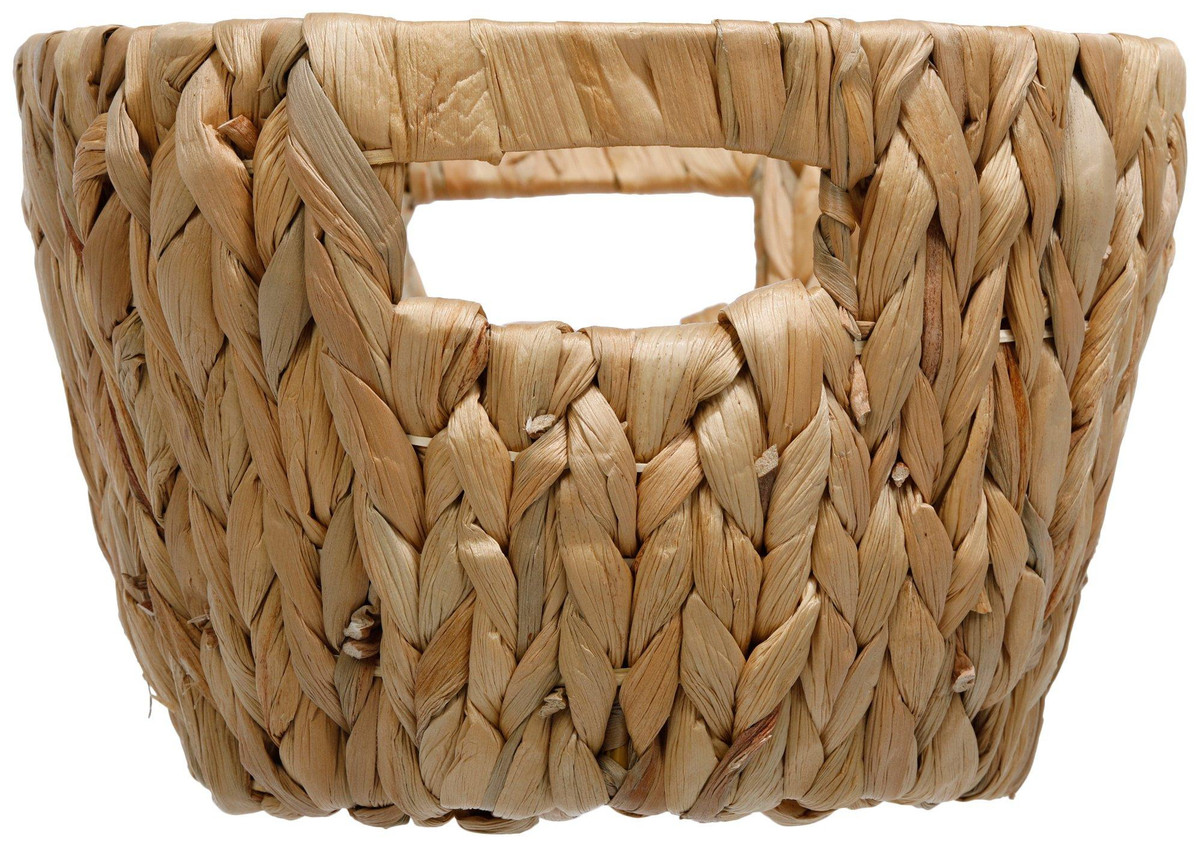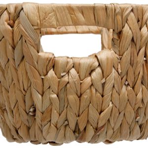 This weaved storage basket features a natural look that adds warmth and texture to any space. Perfect for organizing linens, toys or everyday essentials, this basket combines practical storage with simple style. Measures approximately 10 in x 14 in x 6.5 in.
