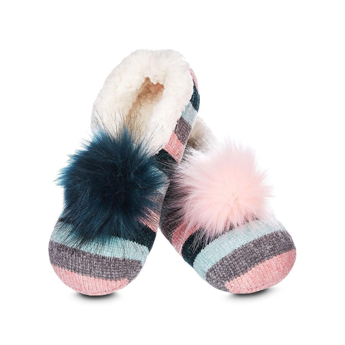 Even when you’re lounging at home, your ensemble should have a little bit of flair. These warm and cozy slippers come with two sets of snap-on pom-poms for your decorating pleasure. Mix and match for whatever mood you’re in. Non skid bottoms mean you can go about your morning routine – or well into the afternoon – with stable feet. Your weekend morning has never been so fun – or so snuggly!