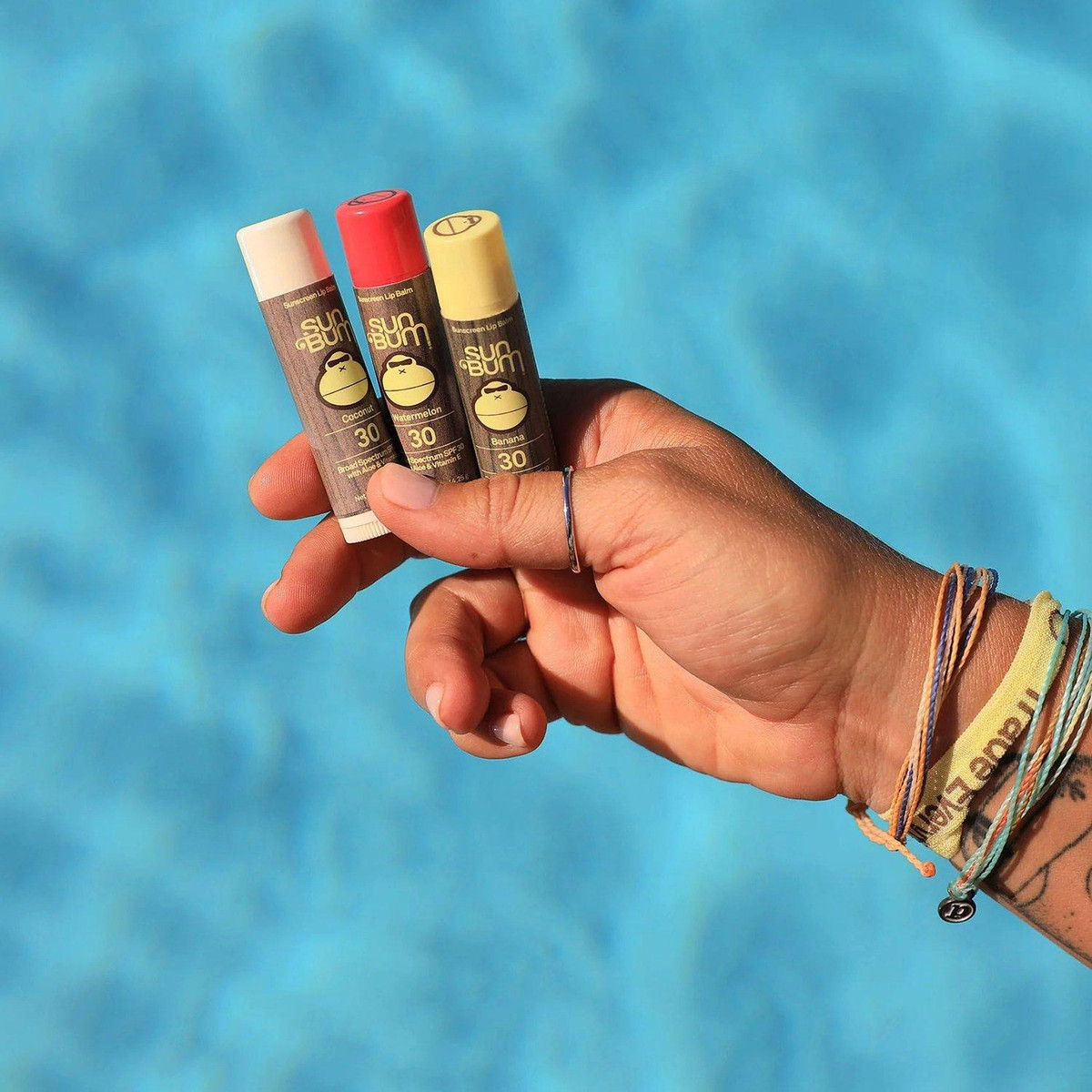 Our fav SPF lip balm with Aloe and Vitamin E to protect and moisturize your kisser all day long.The best things in life come in three’s. So we put your fav SPF lip balm flavors into one pack. Pack Includes Watermelon, Banana, & Coconut. 0.15 Oz Each.