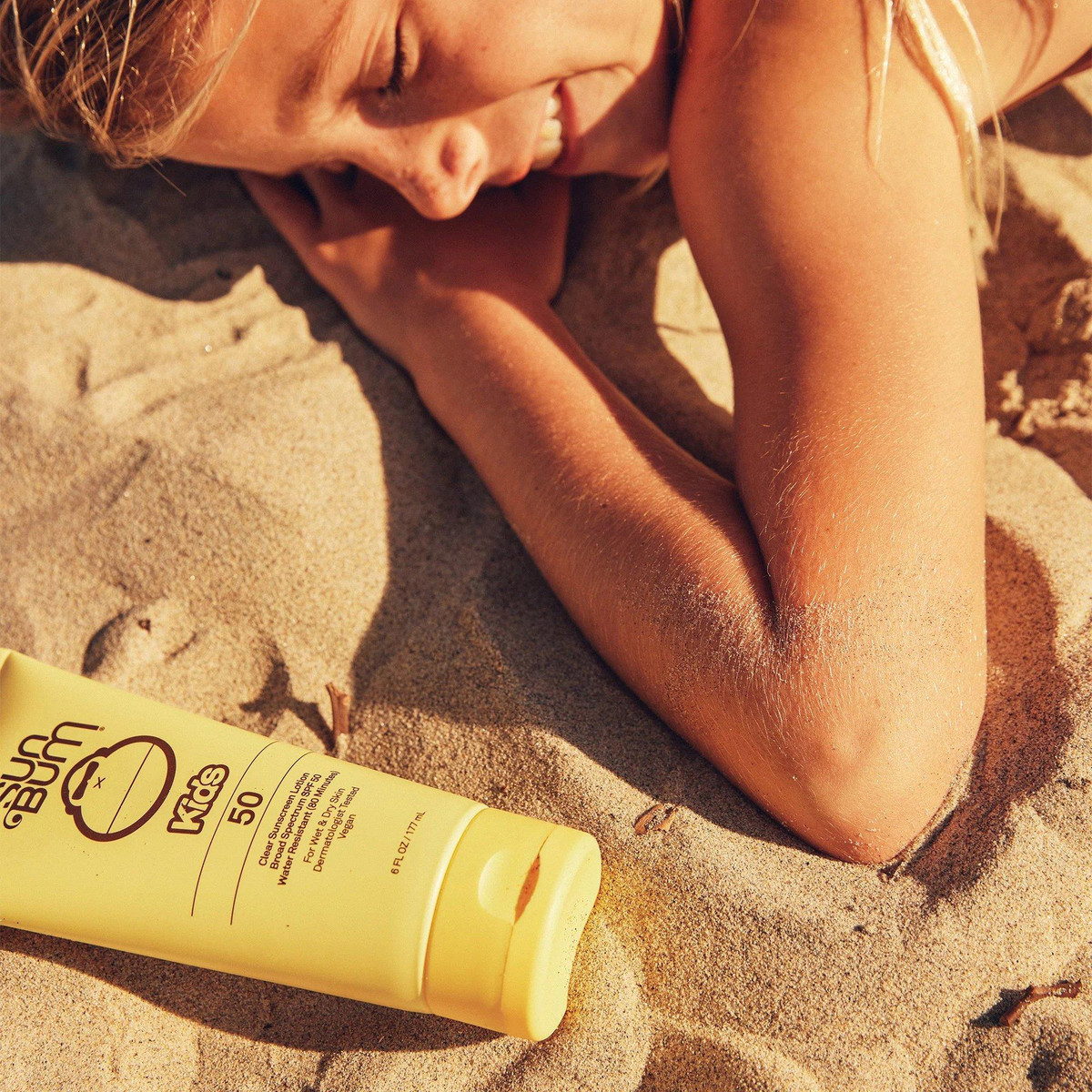Our Kids SPF 50 Clear Sunscreen Lotion is a clear, water-resistant formula that can go on wet or dry skin to keep up with our most active kids.