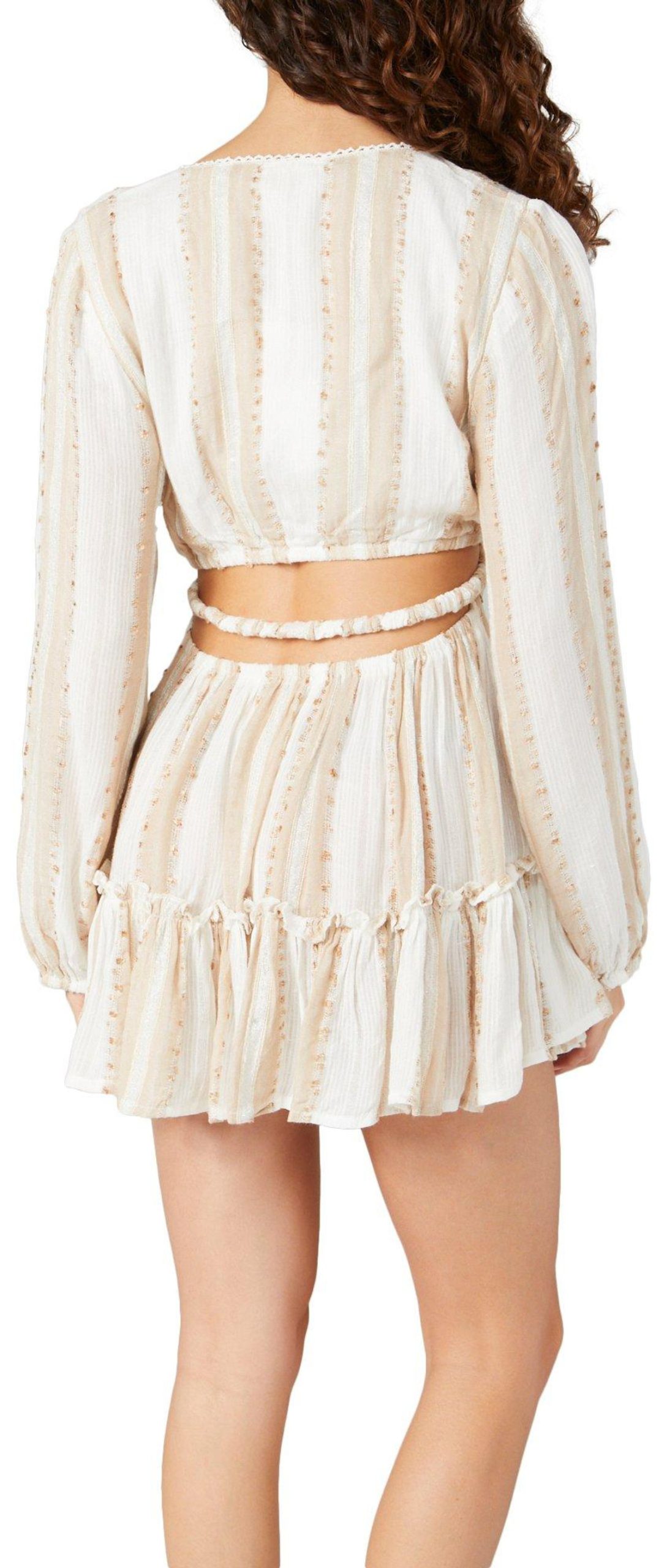 Introducing the Juniors Stripe Lurex Dress, a stylish blend of cotton and viscose for a comfortable and elegant feel. This dress features a striking striped print that adds a touch of sophistication. The v-neckline and long sleeves offer a classic look, while the back cut-out detail adds a modern twist. Perfect for any occasion, this dress combines timeless design with contemporary flair, making it a versatile addition to your wardrobe.