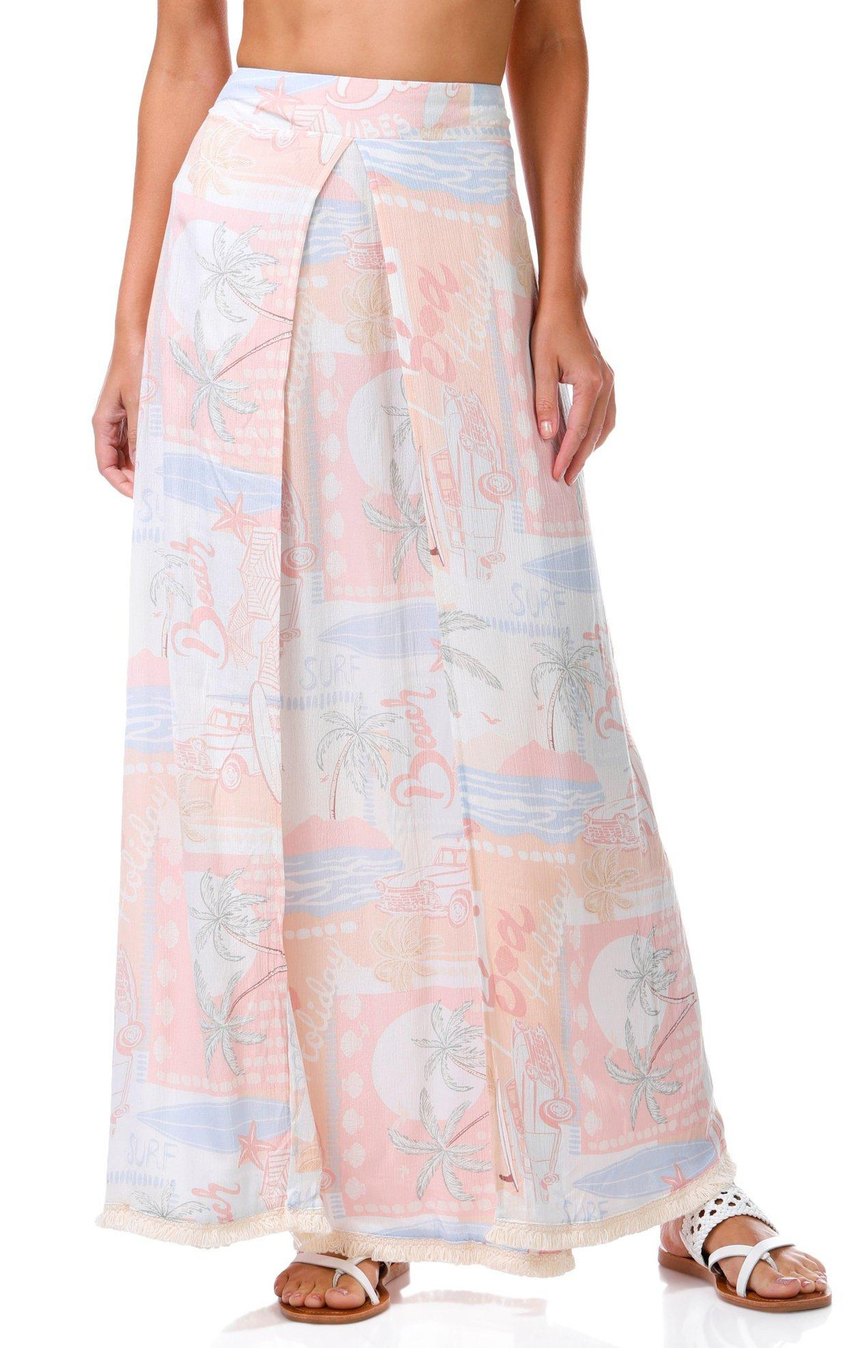 Surf Gypsy Juniors Vacay Postcard Print Maxi Skirt