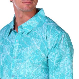 This men’s mini palm print shirt brings a relaxed tropical vibe to your wardrobe. Featuring a subtle palm leaf pattern, short sleeves, a button down front, and a chest slip pocket, it is perfect for warm weather and casual outings. The lightweight fabric ensures comfort while adding a touch of laid back style. Fabricaction 90% polyester, 10% spandex