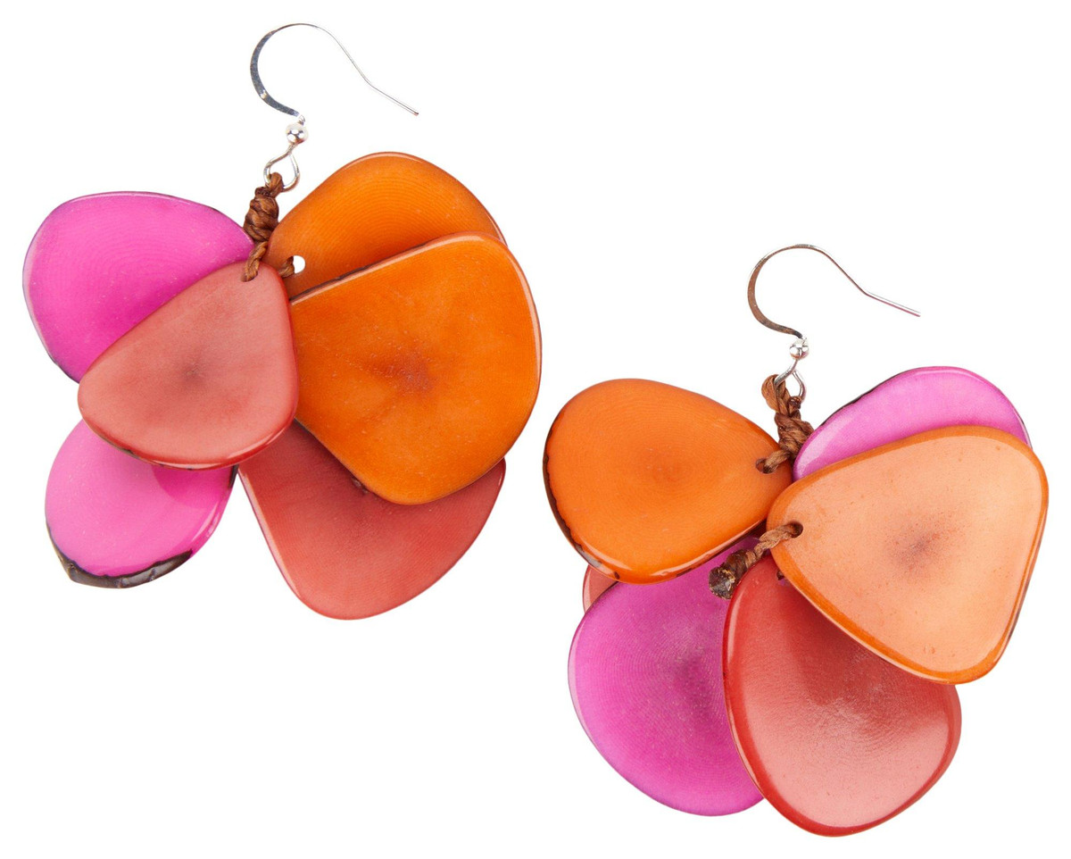 The Tagua 2 In. Mariposa Dangle Earrings feature a beautiful butterfly-inspired design crafted from eco-friendly Tagua seeds. These lightweight, vibrant earrings bring a playful and elegant touch to your style, perfect for adding a pop of color to any outfit.
