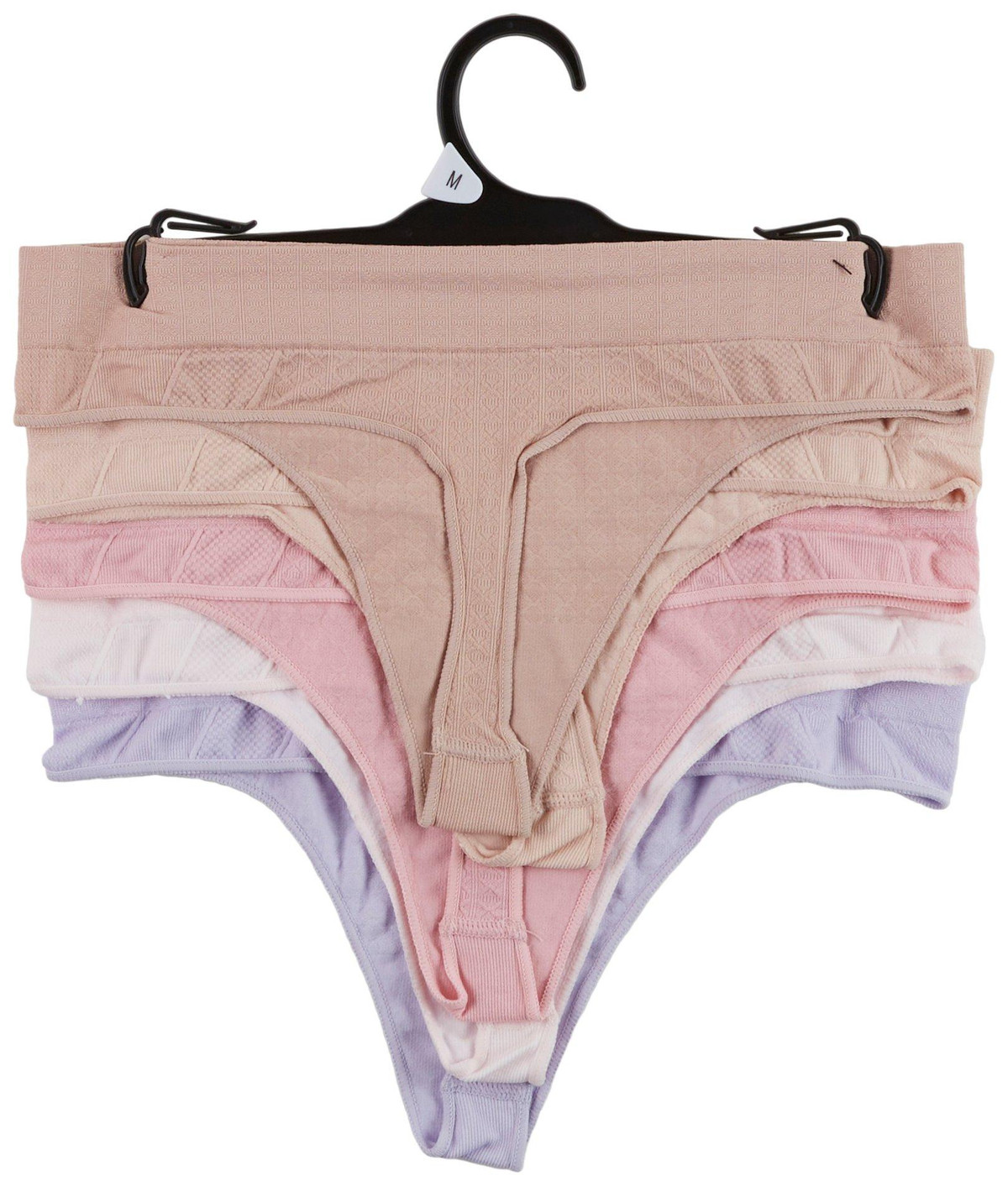 Enhance your essentials collection with the Womens 5Pk Seamless Thong Panties. Designed for comfort, the set includes solid color thongs with a smooth seamless finish that lies discreetly beneath clothing. Crafted from soft stretch fabric, they provide a barelythere feel and breathable support. Ideal for everyday wear. Machine wash cold and tumble dry low for care.