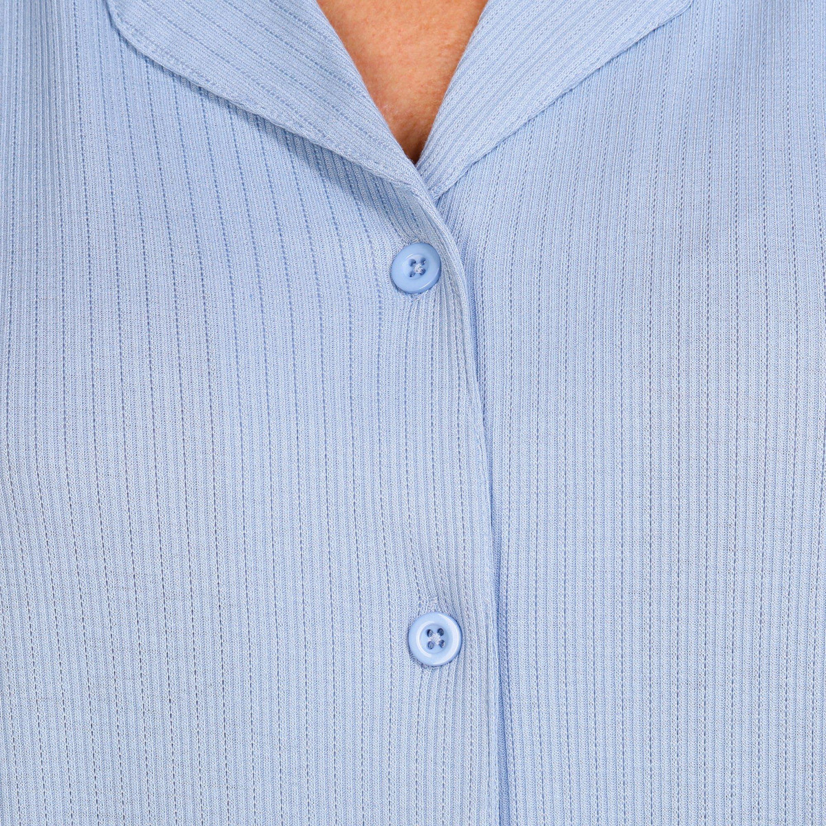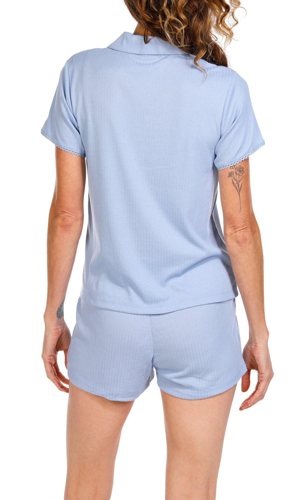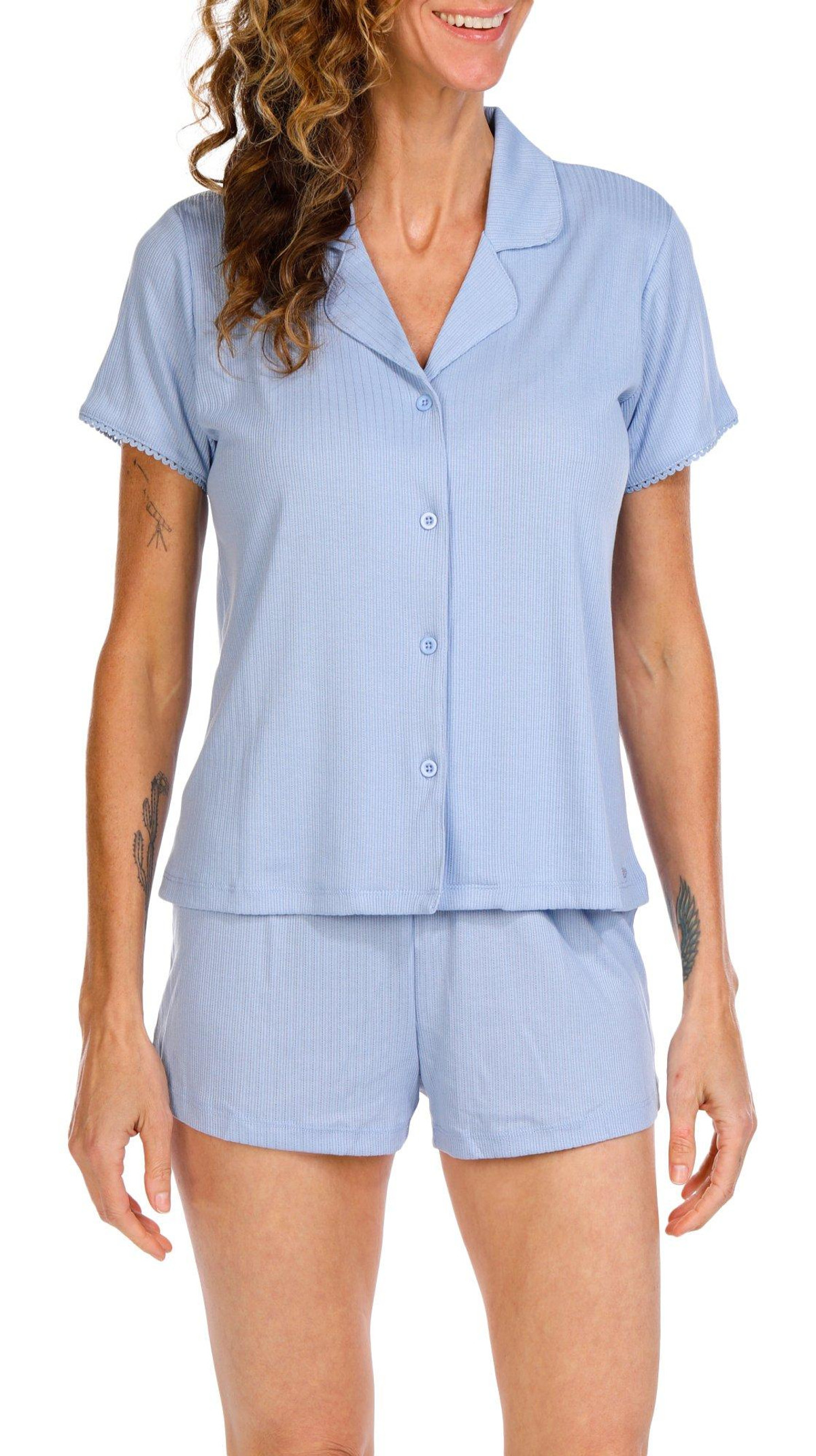 Relax in effortless comfort with this Women’s 2 Pc Ribbed Pointelle Sleepwear Set. The soft, textured fabric features a short sleeve button-down top and matching shorts, perfect for warm nights. Feminine, breathable, and stylishly cozy.