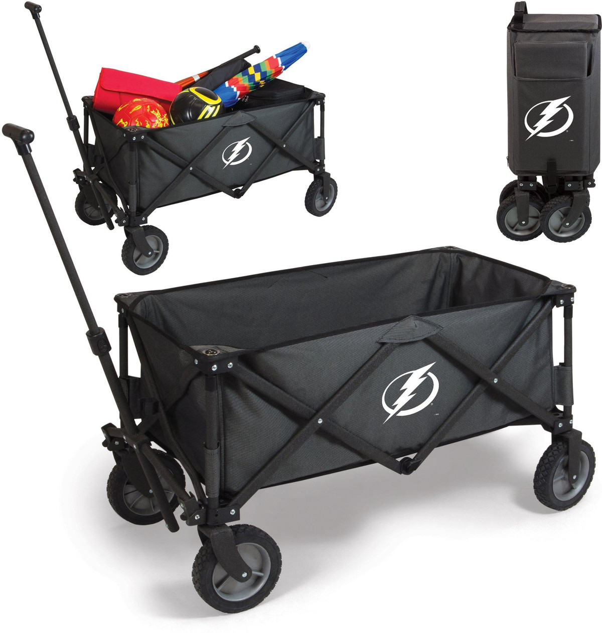 The Adventure Wagon is a utility wagon with heavy-duty wheels & telescopic handle that folds into a compact size and includes a fitted cover. Made of 600D polyester with a powder coated steel frame. Measures: 35.6” x 18.9” x 21.9” open, 10” x 11” x 30” closed.