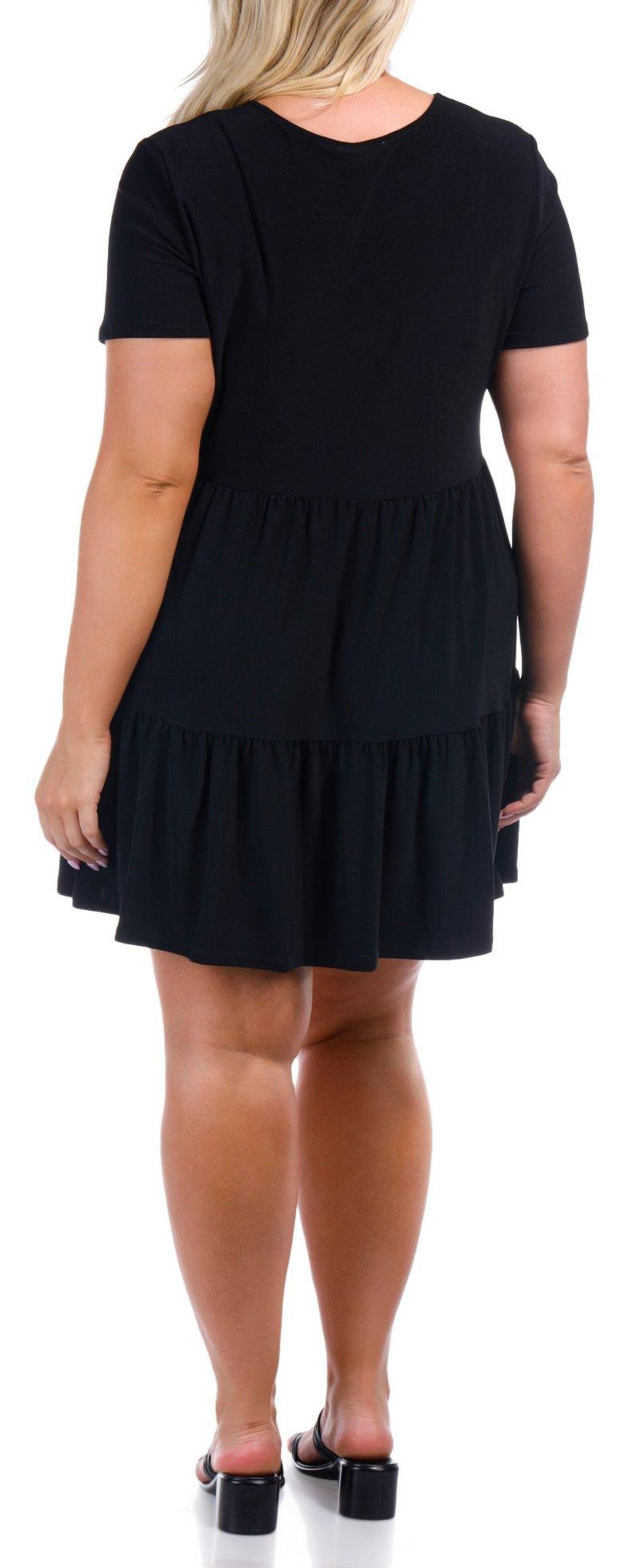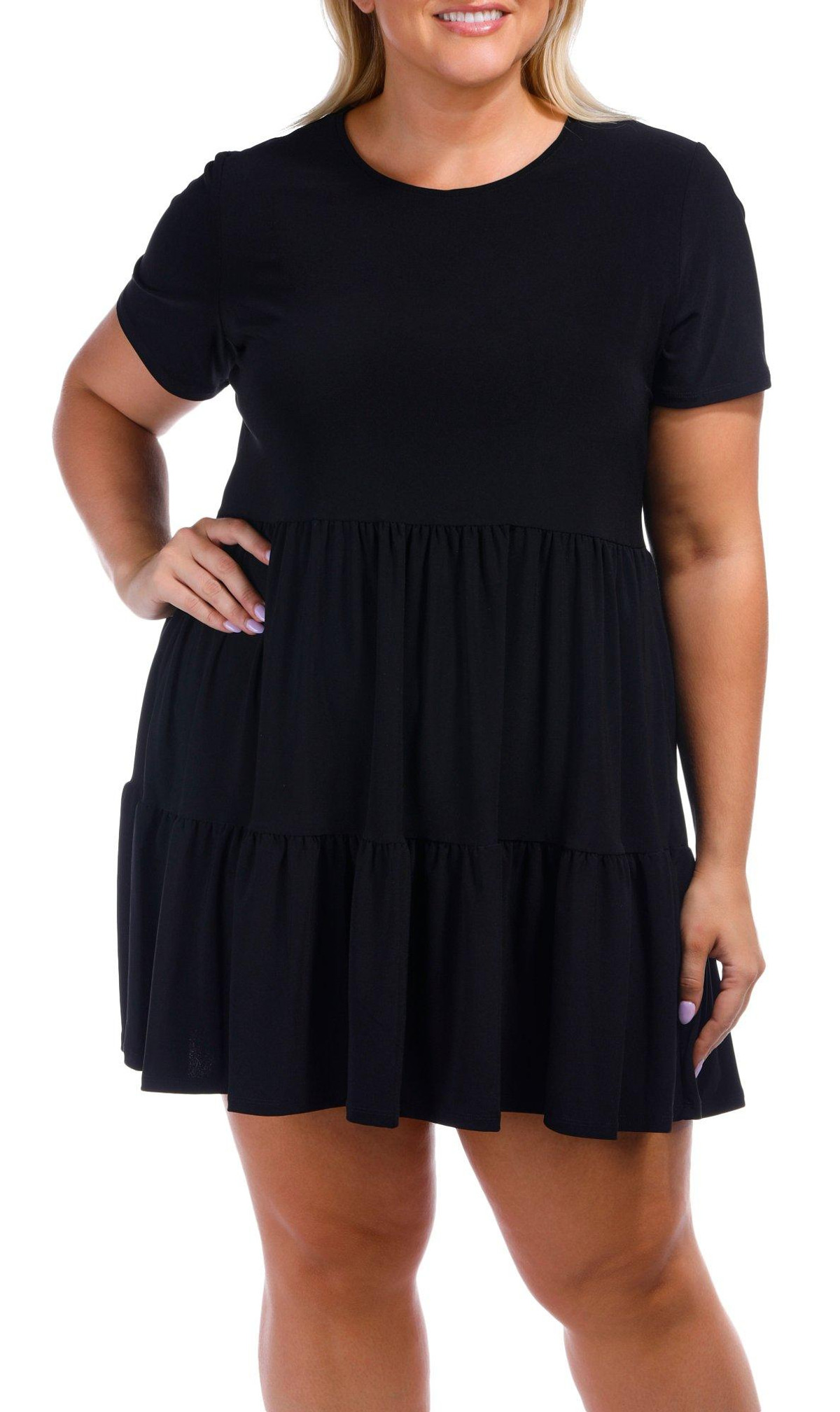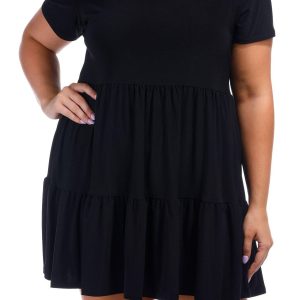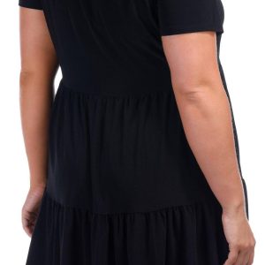 Discover casual elegance with this short sleeve tiered dress, featuring a chic solid color design on soft lightweight fabric, a short hemline and a relaxed fit. Perfect for dinner out, a day at the office or weekend shopping trips, this dress effortlessly combines comfort and style. Fabrication is 95% Polyester, 5% Elastane. Dress length measures approximately 35 in.