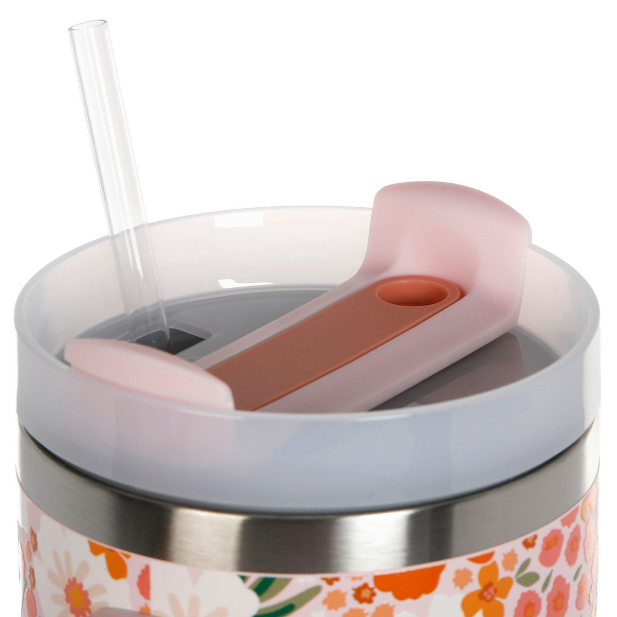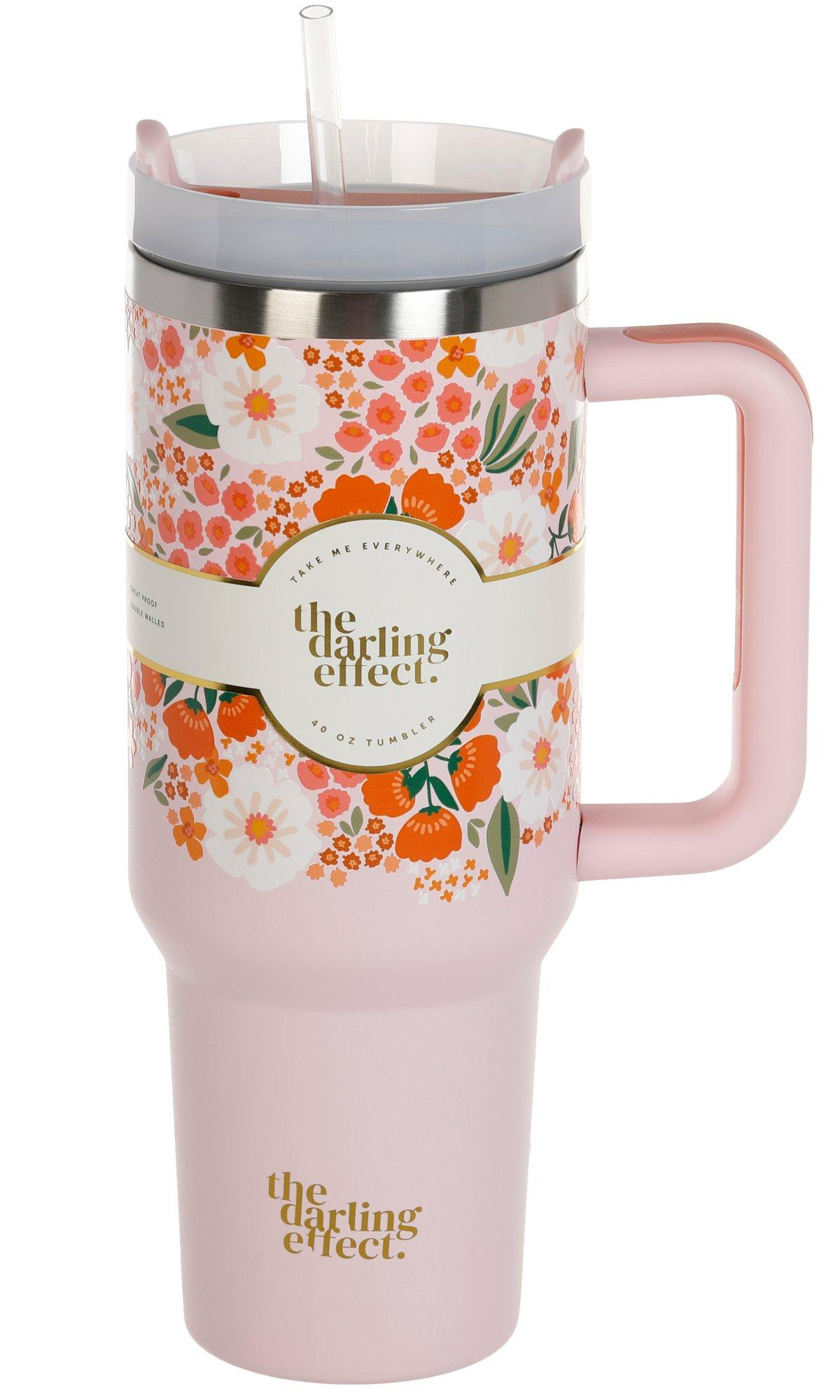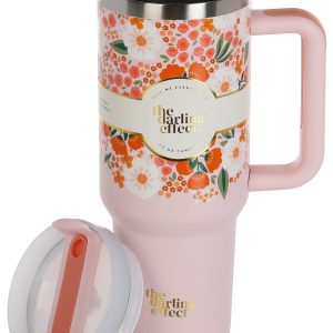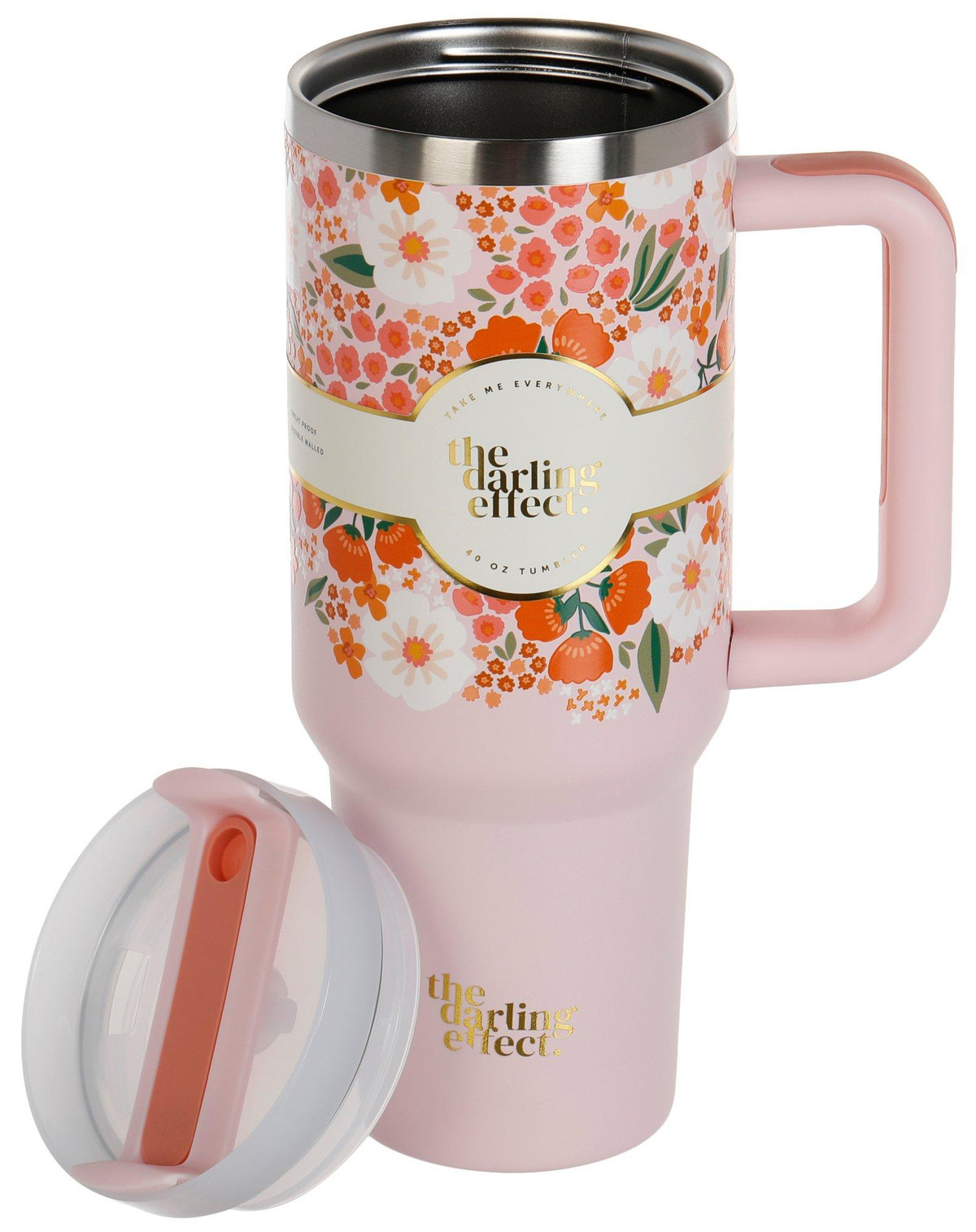 Introducing the Sweet Meadow 40 oz Take Me Everywhere Stainless Steel Tumbler with handle, adorned with a beautiful floral pattern that brings a touch of elegance to your daily hydration routine. This tumbler is designed for both style and functionality, featuring durable stainless steel construction, a convenient handle and a delightful design which adds a touch of fun and personality, making it a standout accessory for any drink.