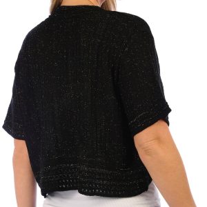 Introducing the Women’s Metallic Bolero, crafted from 100% acrylic for a soft and lightweight feel. This stylish bolero features a knit body, an open front design, short sleeves, and a chic cropped length. Perfect for adding a touch of sparkle to any outfit, this bolero combines elegance and versatility effortlessly, making it a must-have addition to your wardrobe. 16 inch length.