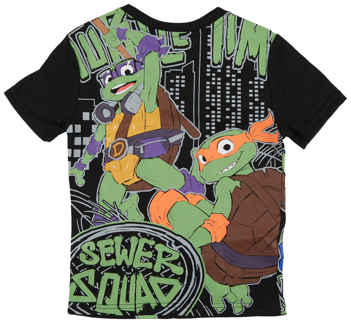Introducing the Little Boys TMNT Sewer Squad T-Shirt, perfect for young fans of the Teenage Mutant Ninja Turtles. Made from a comfortable blend of cotton and polyester, this t-shirt features a vibrant TMNT graphic design. With a crew neckline and short sleeves, it offers a classic fit ideal for everyday adventures. Perfect for bringing a touch of turtle power to any outfit!