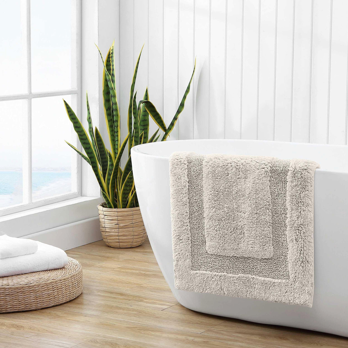 The Tommy Bahama Long Branch reversible solid bath rug is designed to offer a luxurious and comfortable experience with every step. Constructed from 100% premium cotton fibers, this thick and soft rug feels like stepping on a cloud. The yarn-dyed cotton ensures durability and long-lasting color, making it a perfect addition to any bathroom. For added convenience, the bath rug is machine washable, ensuring easy care. Measures 21 in. x 34 in.