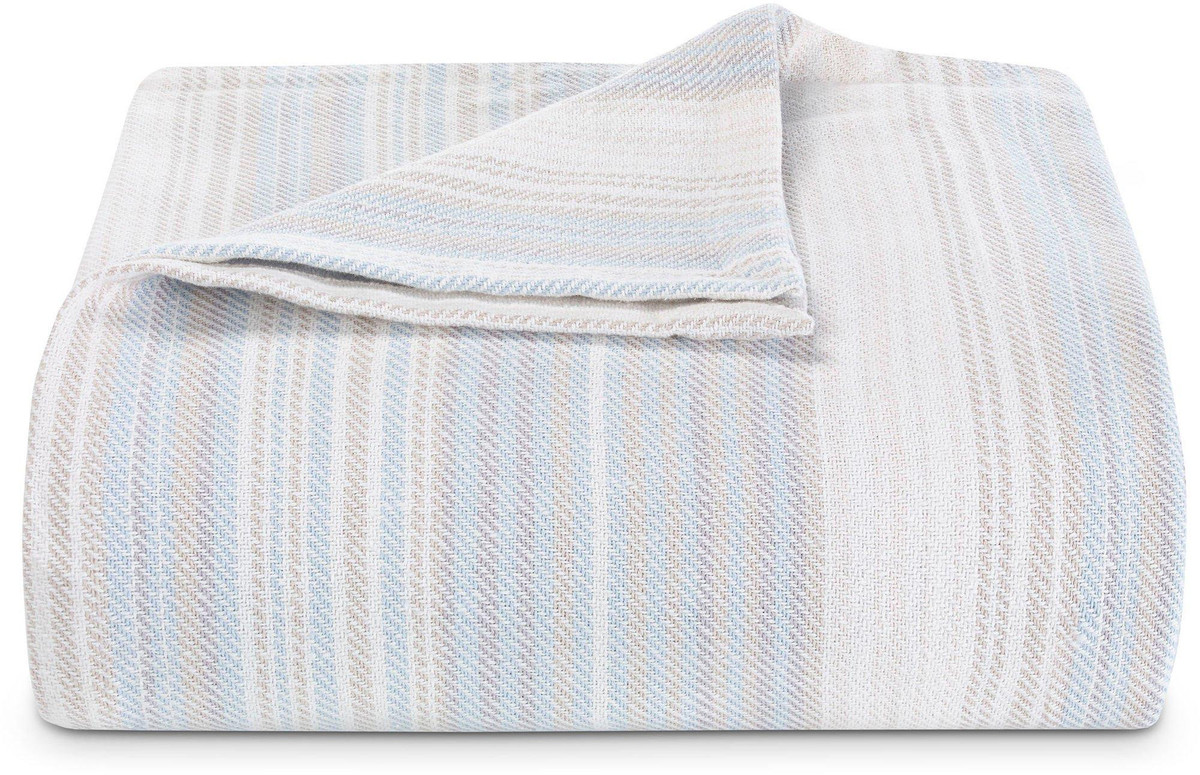 Sandy Shore Stripe Blanket is perfect to layer onto your bed or to snuggle up on the couch. Blanket features ultra-soft 100% cotton that is multicolored with thin stripe pattern.