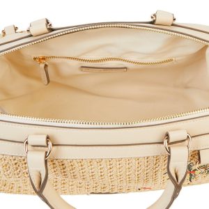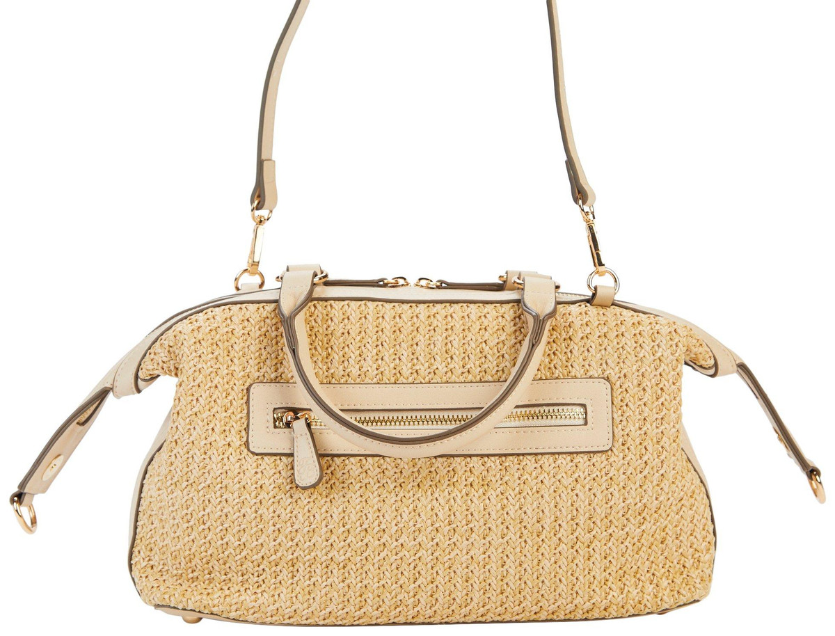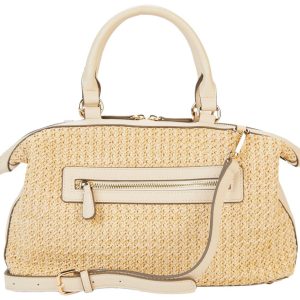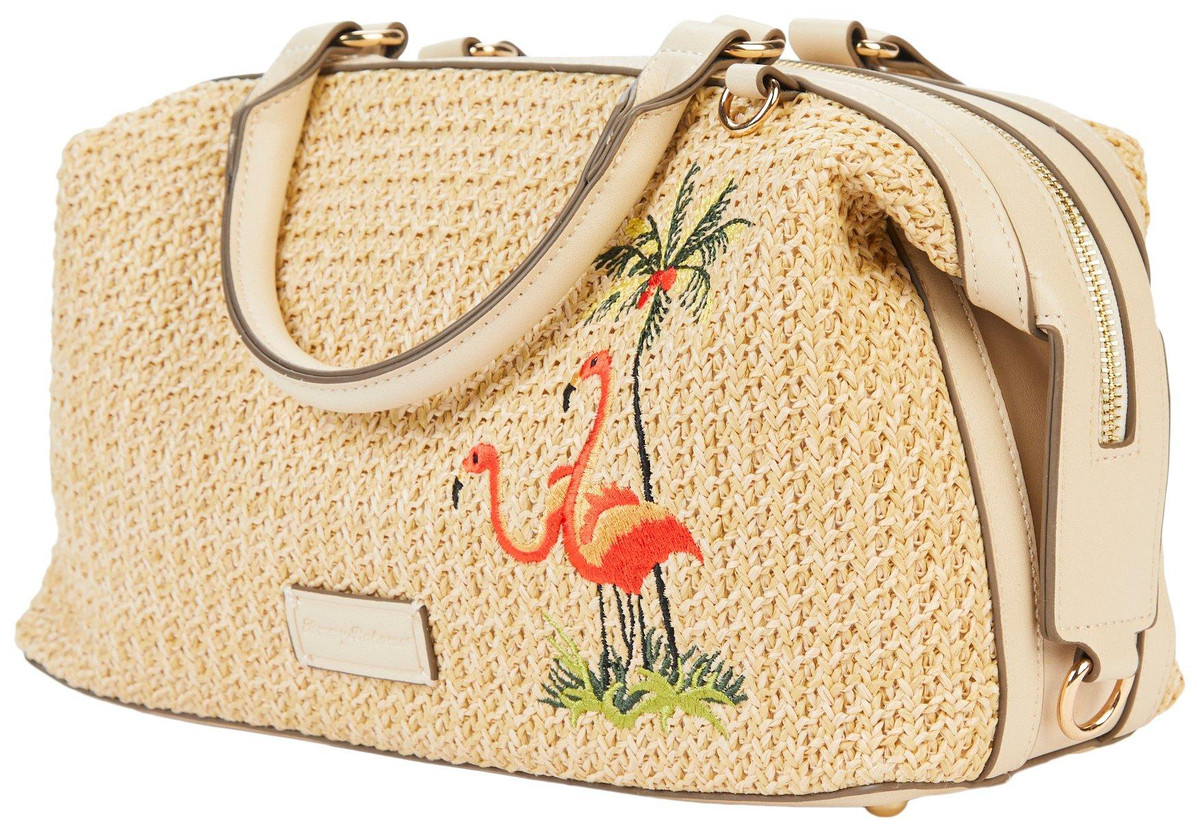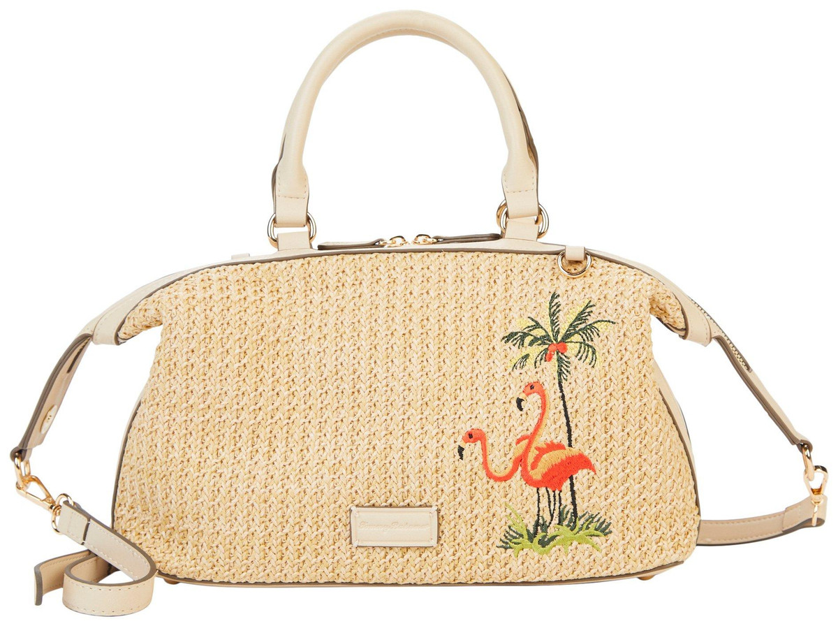 This Tommy Bahama satchel features double shoulder straps and a removable long adjustable strap for versatile carrying options. The woven textured design adds a touch of coastal charm while the outer zipper pocket provides quick access to essentials. Perfect for everyday use with a relaxed yet refined style.