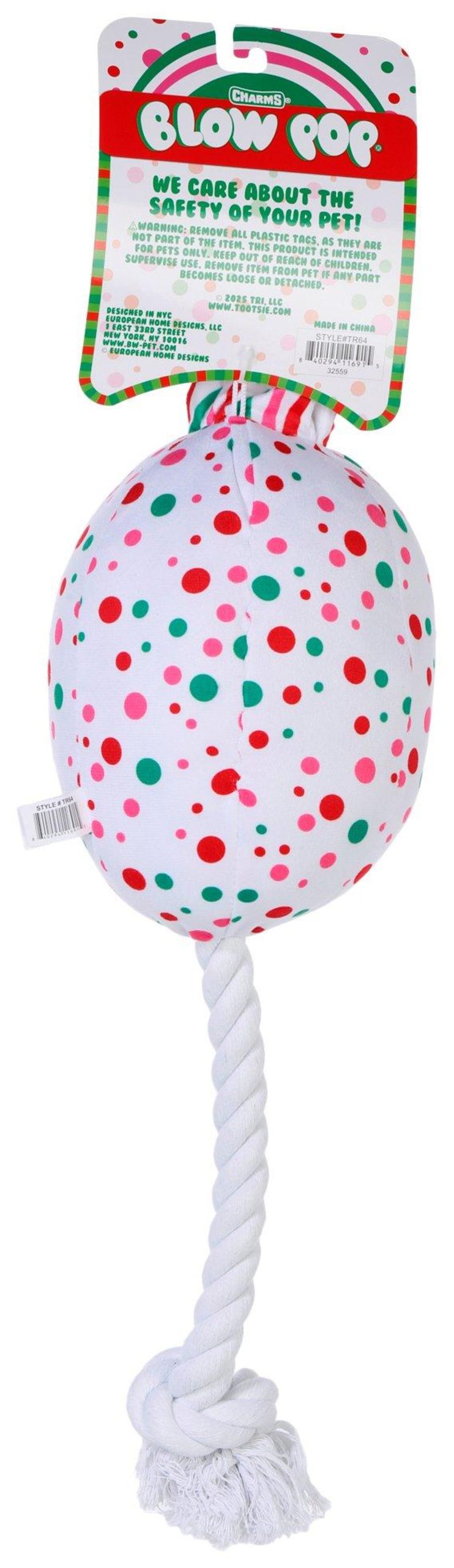 Tootsie 21 in Jumbo Blow Pop Dog Toy with Rope