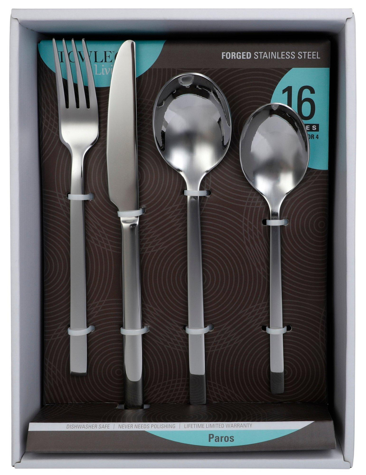 This Living Forged Paros 16 piece Flatware Set has effortless elegance. Featuring a streamlined design, this set never needs polishing, saving you time and effort. It includes 4 dinner forks, 4 dinner knives, 4 dinner spoons and 4 teaspoons.