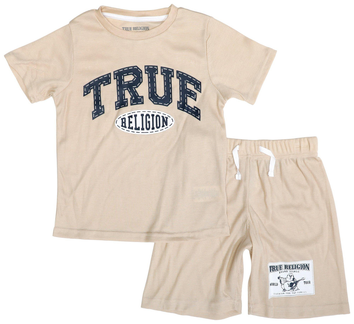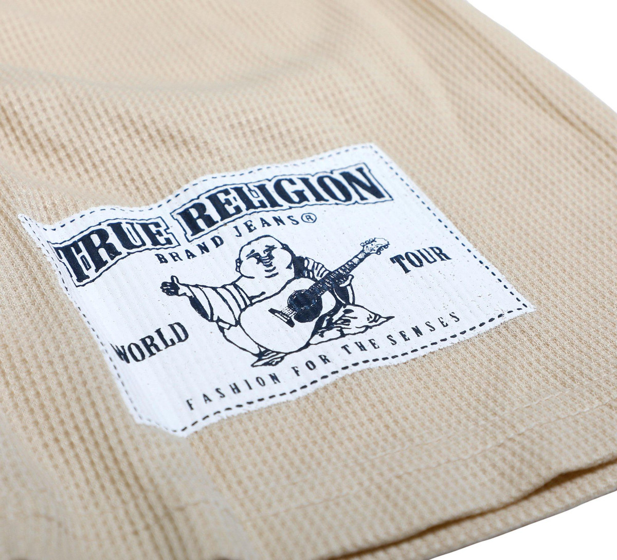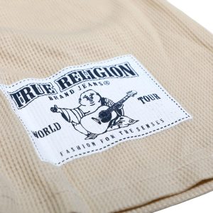 This True Religion 2 Piece Sleep Set delivers comfort and style with a unique waffle fabric texture. Made from 100 percent polyester, it feels soft and breathable for a cozy night’s rest. The top features a classic crew neckline with a bold logo on the chest, while the matching bottoms include a logo detail on the bottom left leg. Designed for easy movement and relaxation, this set is perfect for lounging or bedtime.