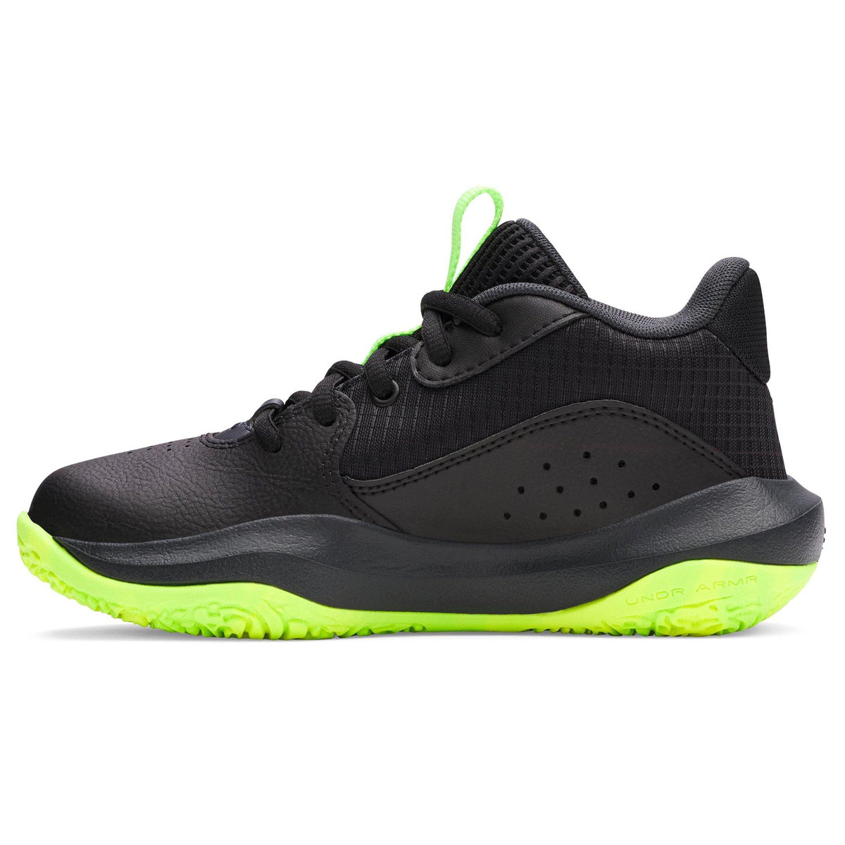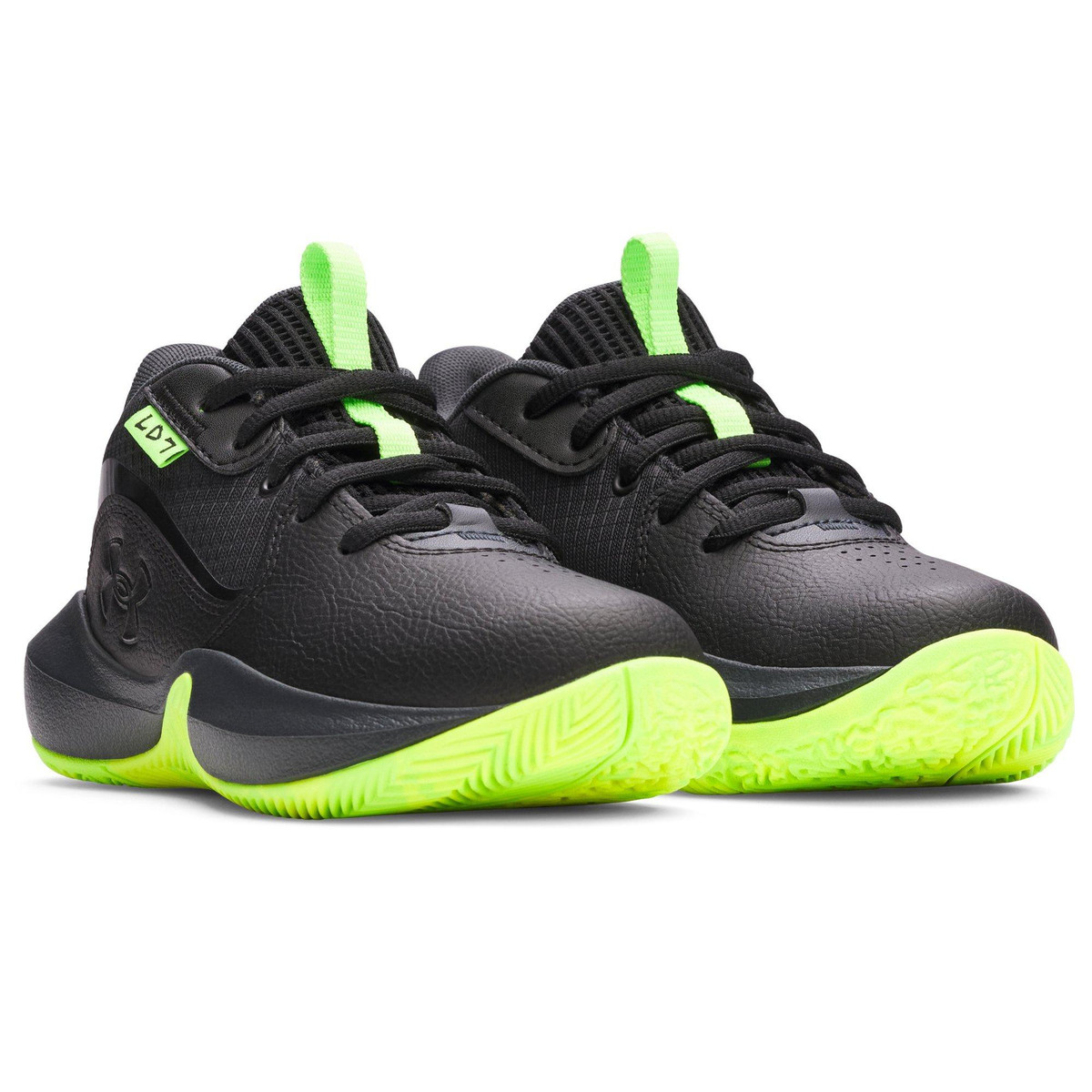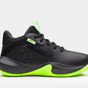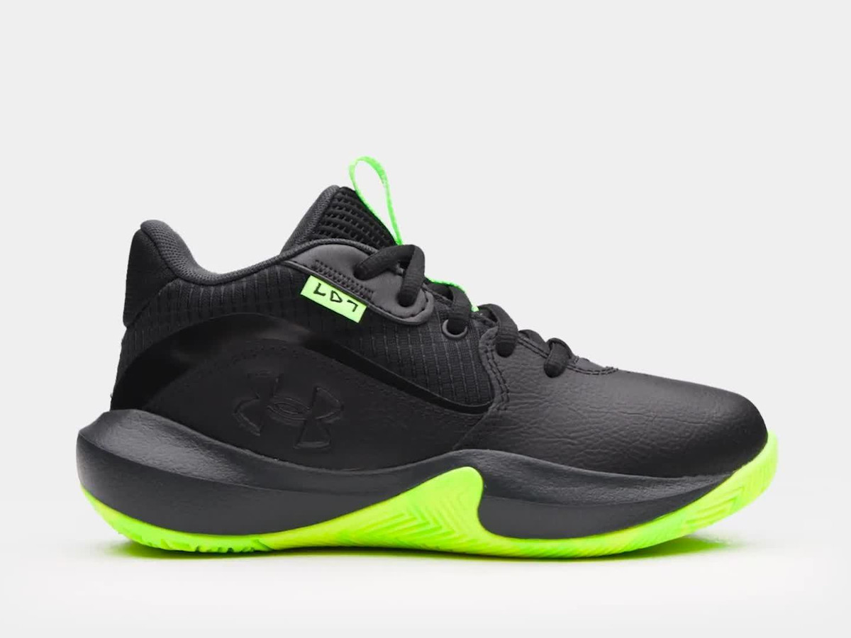 Take to the courts in comfort and style with the Kids’ Under Armour Lockdown 7 Basketball Shoe. Features mesh and leather upper in a basketball shoe style with a round toe, lace up front, perforated toe box, padded collar and tongue, smooth lining with a padded insole, EVA midsole delivers a lightweight & responsive ride and durable, solid rubber outsole with herringbone traction pattern.