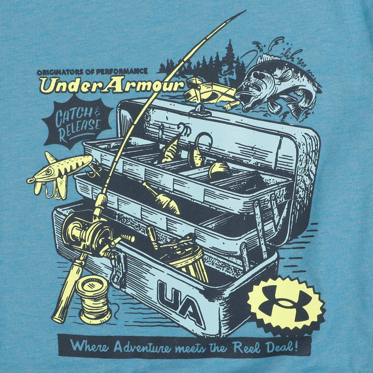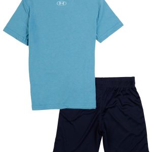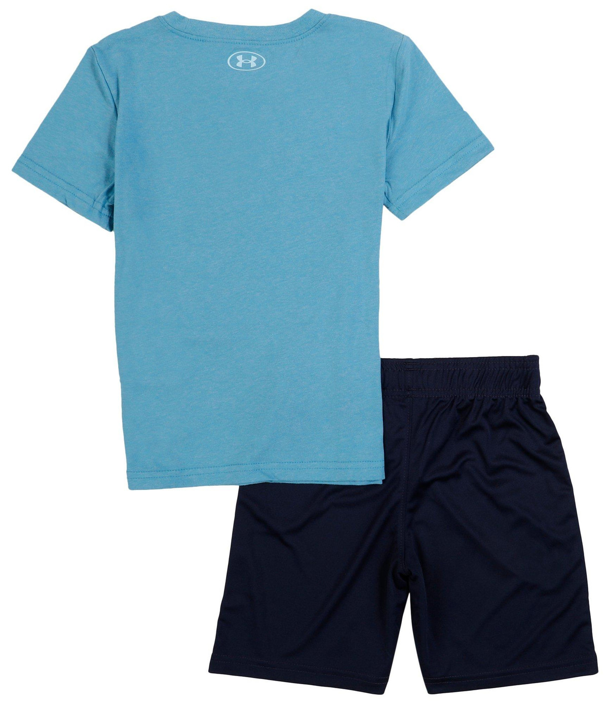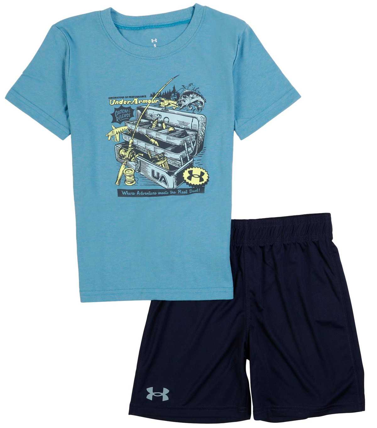 The Little Boys 2 Pc Retro Tacklebox Shorts Set hooks fun and comfort together. Made from a cotton-polyester blend, it features a soft t-shirt with a retro tacklebox graphic and easy pull-on shorts.